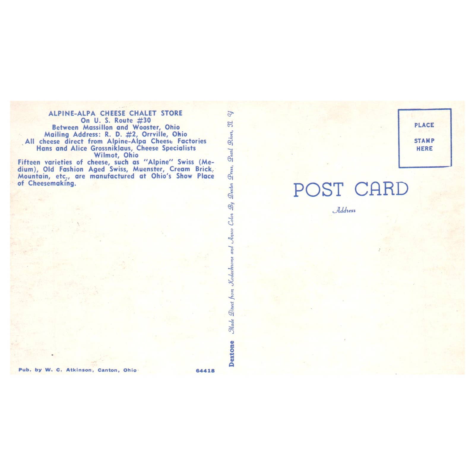 Vintage Postcard - Alpine-Alpa Cheese Chalet Store Wilmot Ohio Hans Grossniklaus TJ7-1