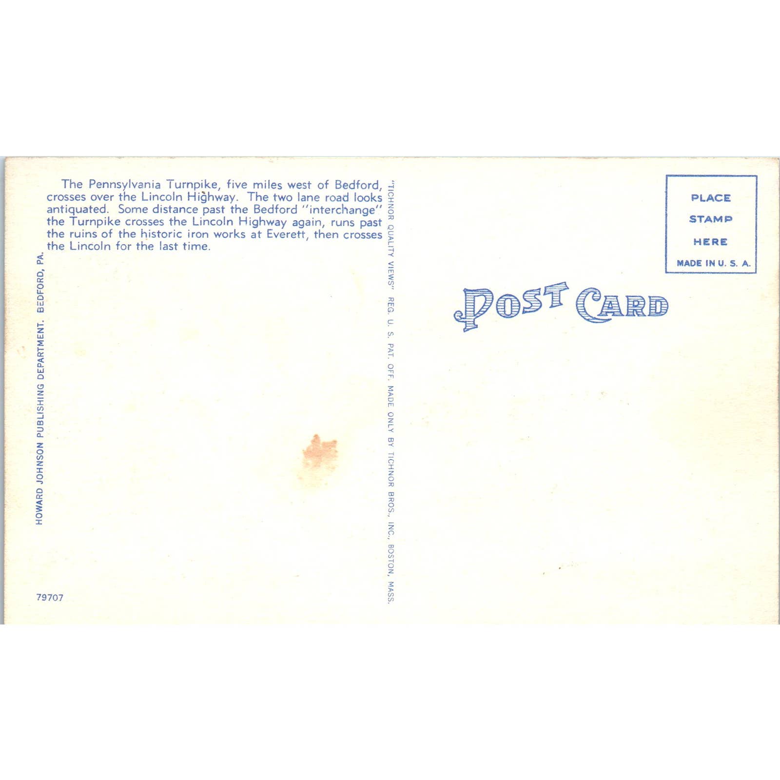 Vintage Postcard PA Turnpike & Lincoln Highway Through Narrows West of Everett TI1-1
