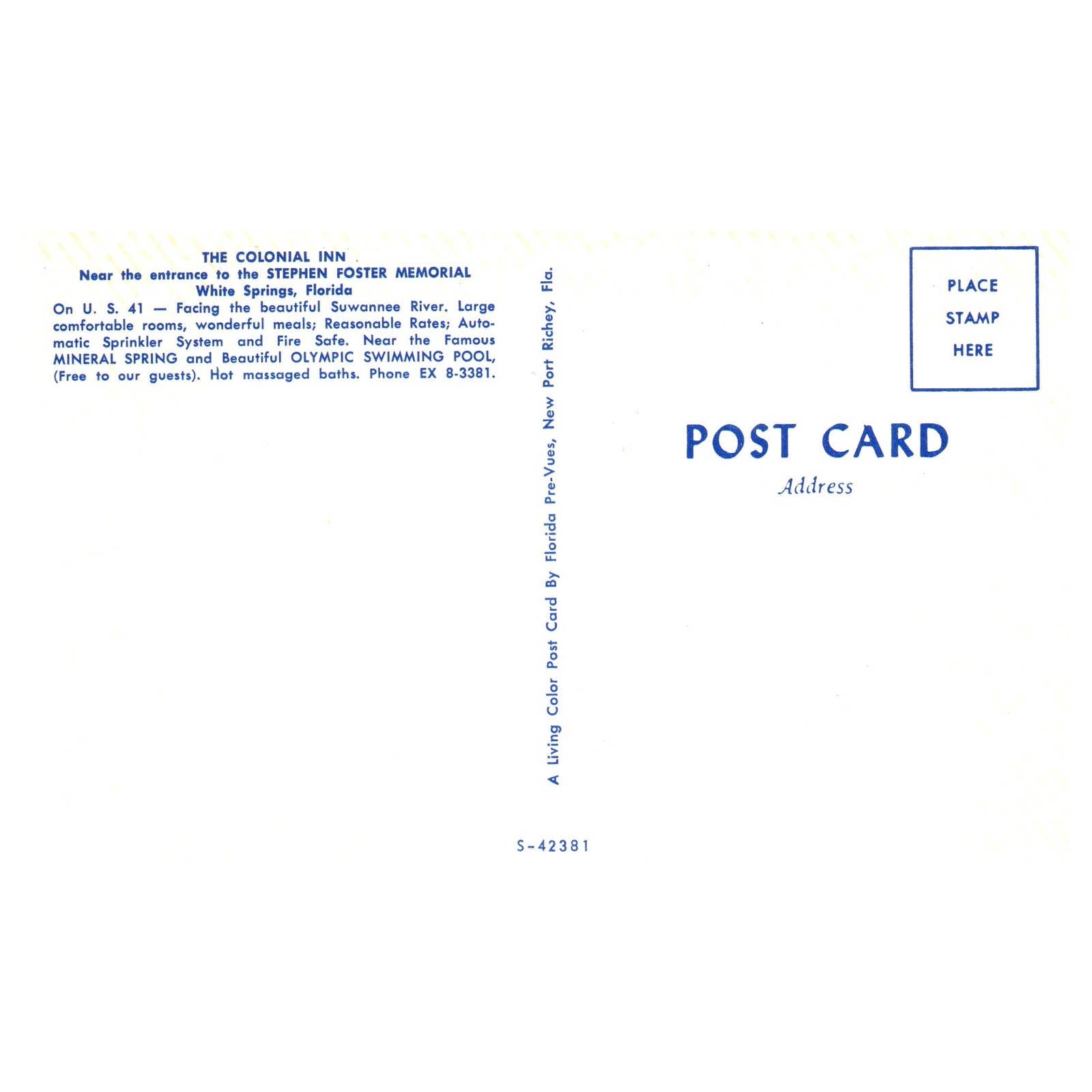 Vintage Postcard - The Colonial Inn Near Stephen Foster Memorial White Springs FL AD9