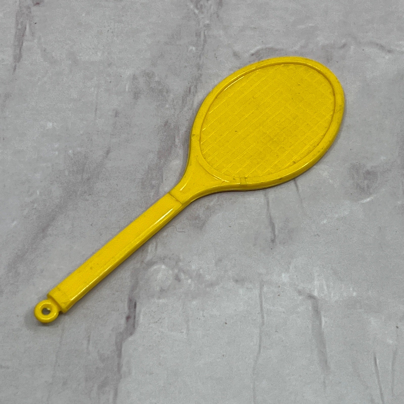 Vintage YELLOW Celluloid Barbie Doll Tennis Racket Sport Miniature Diorama 3" SE2