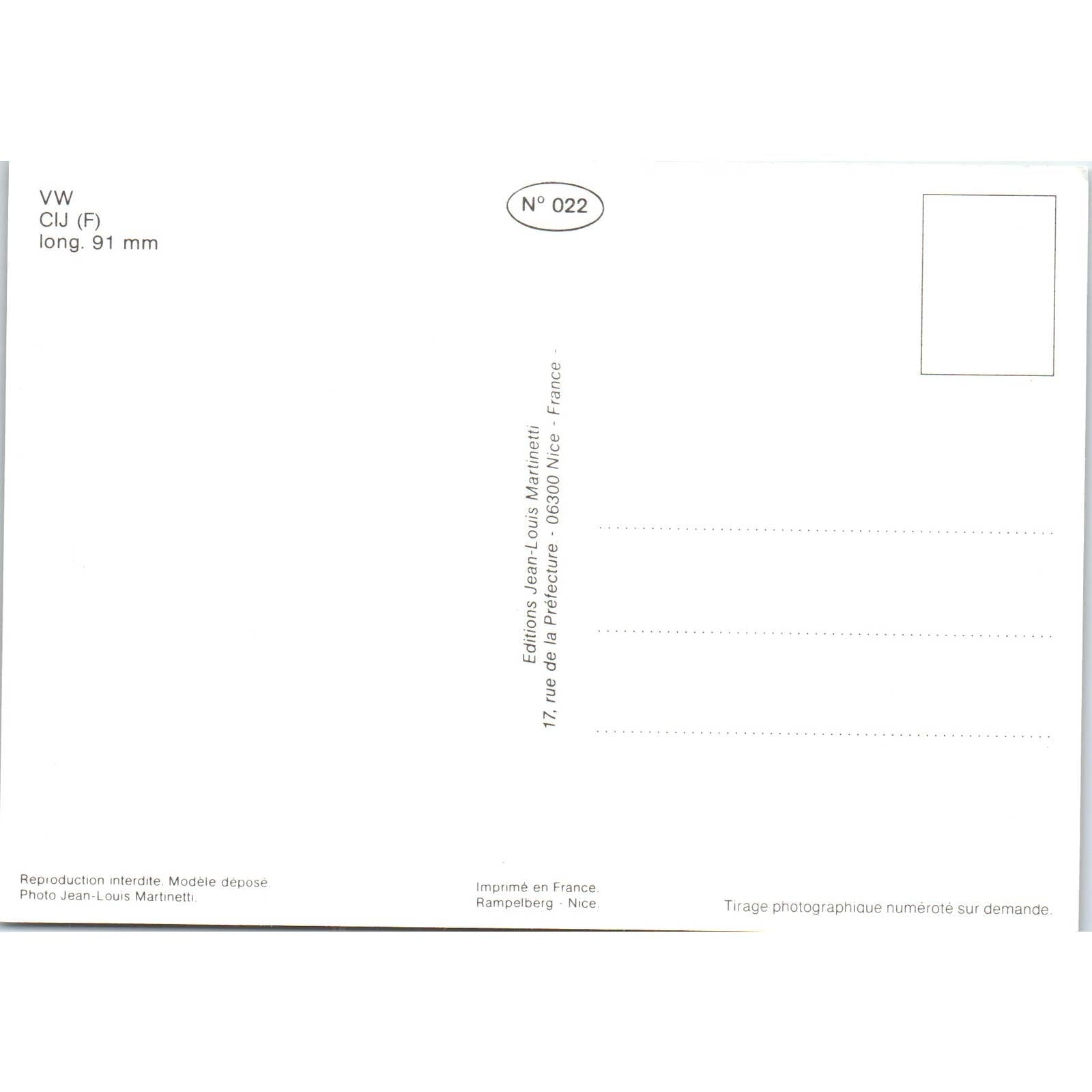 VW Volkswagen CIJ (F) French Toy Race Car Original Postcard TK1-P18