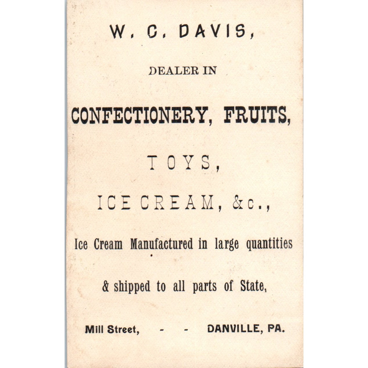 W.C. Davis Toys Ice Cream Danville PA Boy With Puppy c1880 Trade Card AF1-AP8