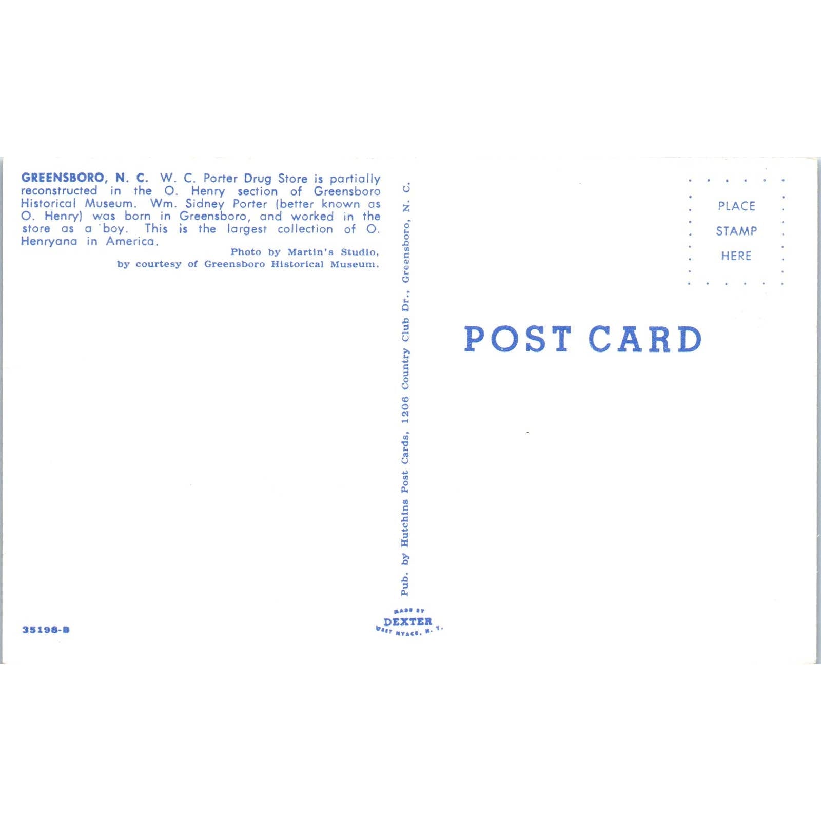 W.C. Porter Drug Store Interior Greensboro NC Original Postcard TK1-25