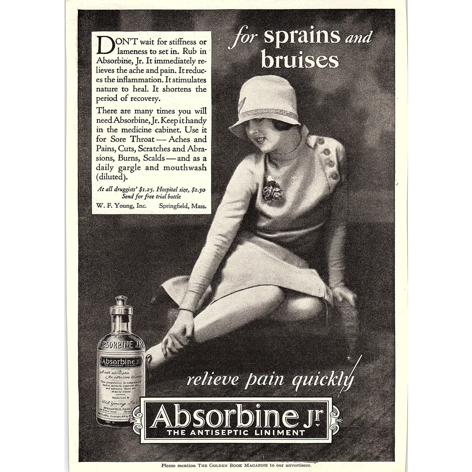 W.F. Young Inc Absorbine Jr Antiseptic Liniment Springfield MA 1926 Ad AG3-7