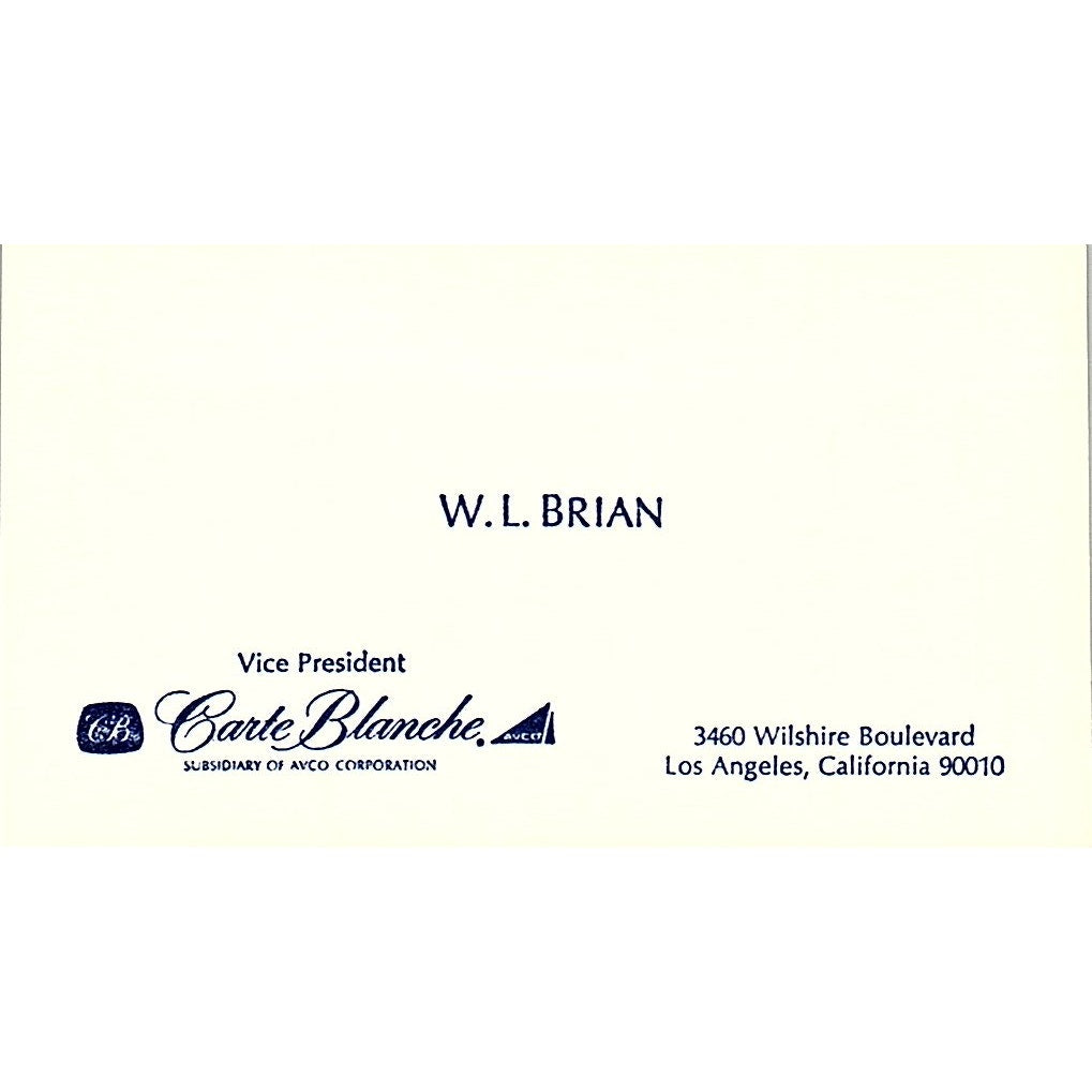 W.L. Brian VP Carte Blanche, Los Angeles CA Vintage Business Card SB4-B2