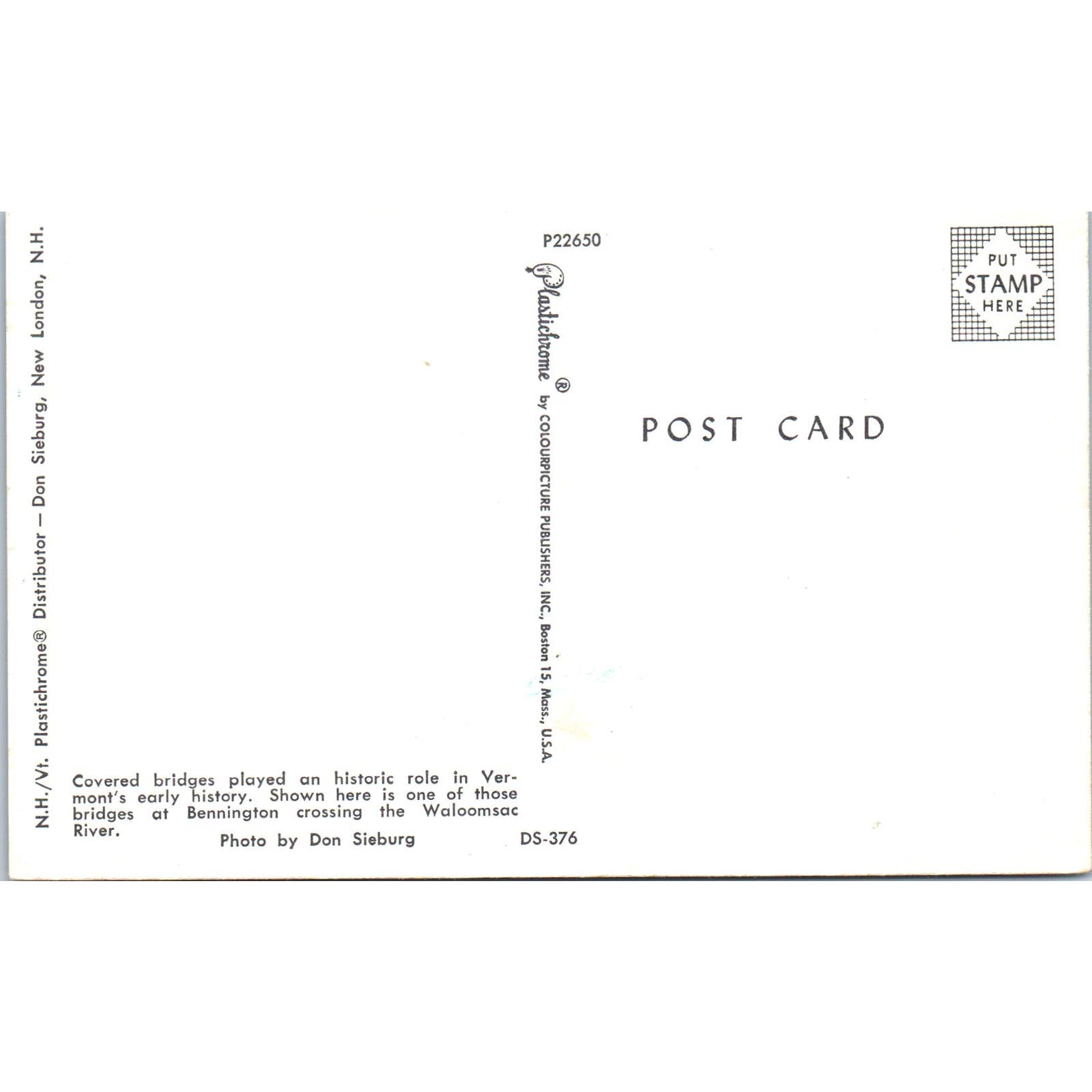 Walloomsac River Bennington Vermont Covered Bridge Postcard PB13