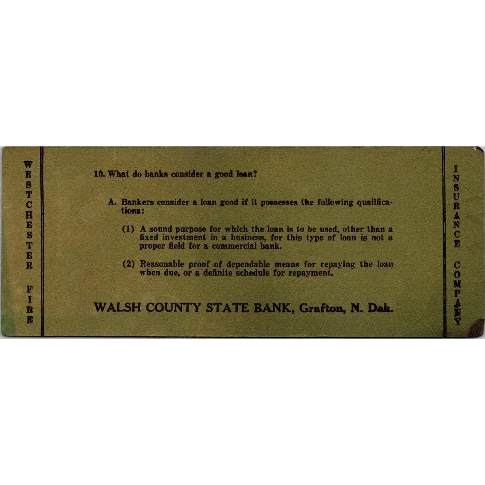 Walsh County State Bank Grafton ND Antique Blotter Card AJ5-H6