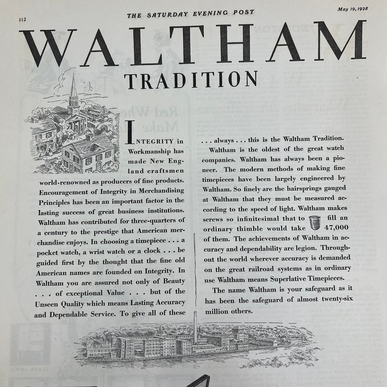 Waltham Tradition Timepieces MA 1928 Original Magazine Advertisement FL6-8