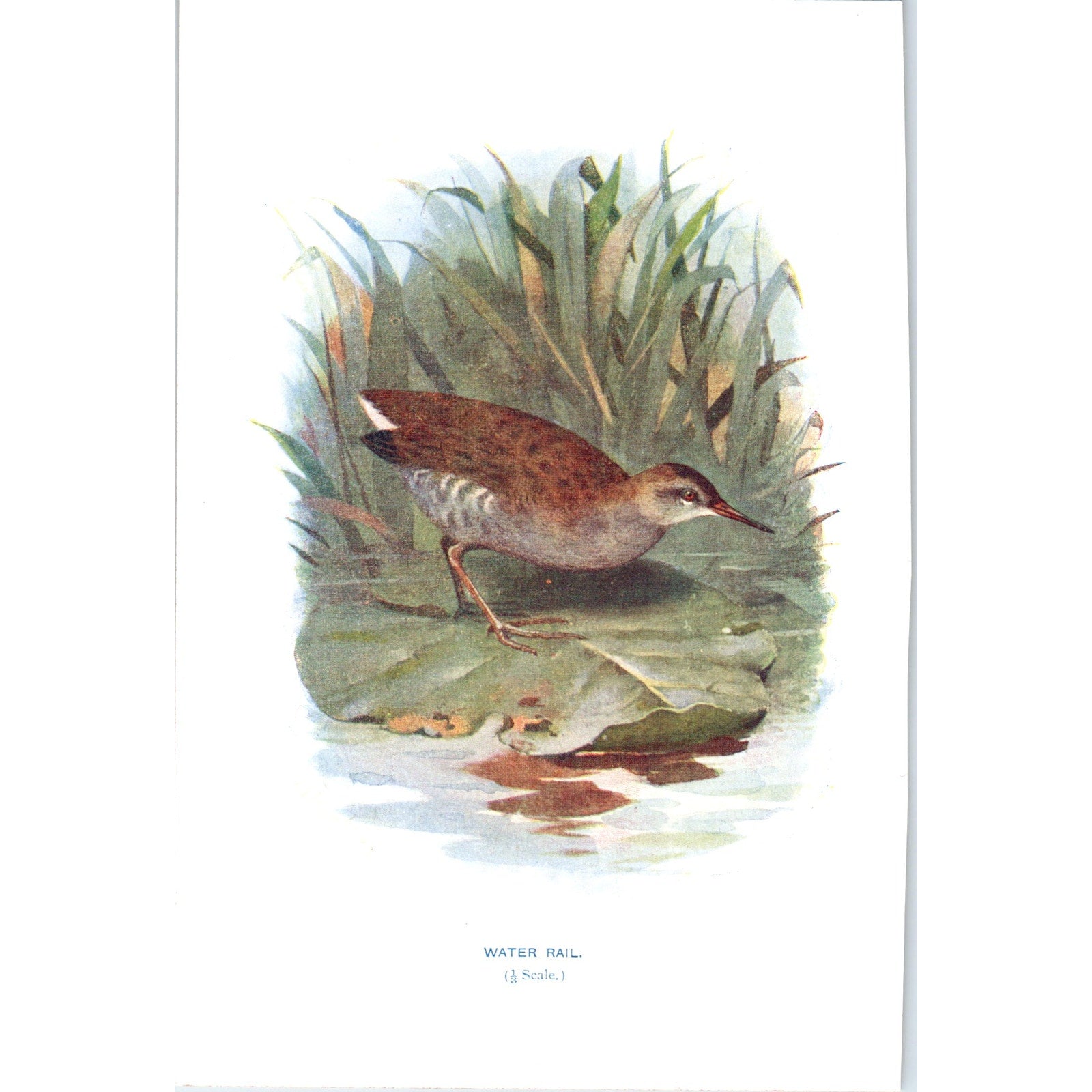 Water Rail Bird 1903 Original Color Engraving Plate Print AD8-B6