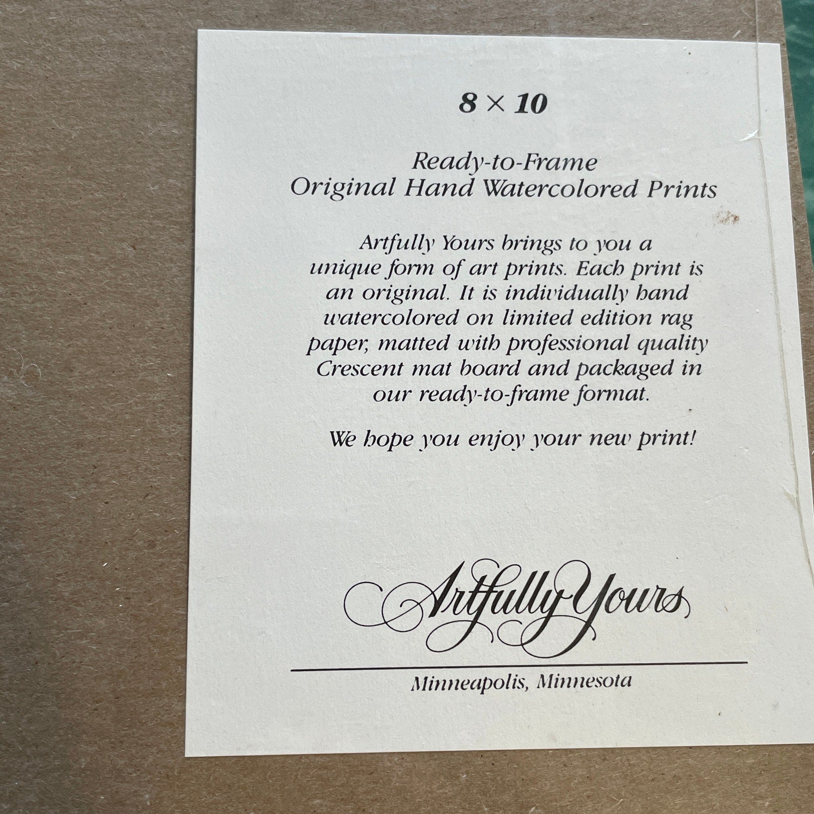 8x10 Matted Print Hand Watercolor, signed Shar Coulson. There are several of these available, the colors are slightly different on each one, as they are individually hand painted. See pics for examples.