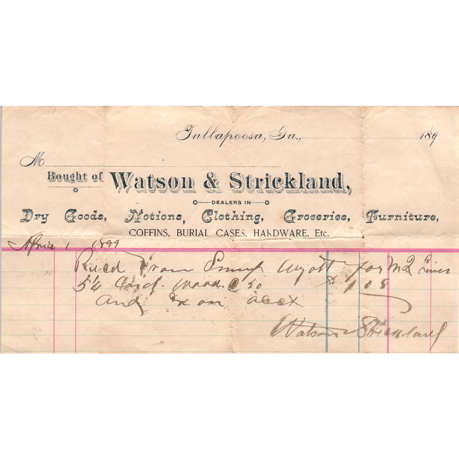 Watson & Strickland Dry Goods Tallapoosa 1890s Original Billhead Receipt D8-LL