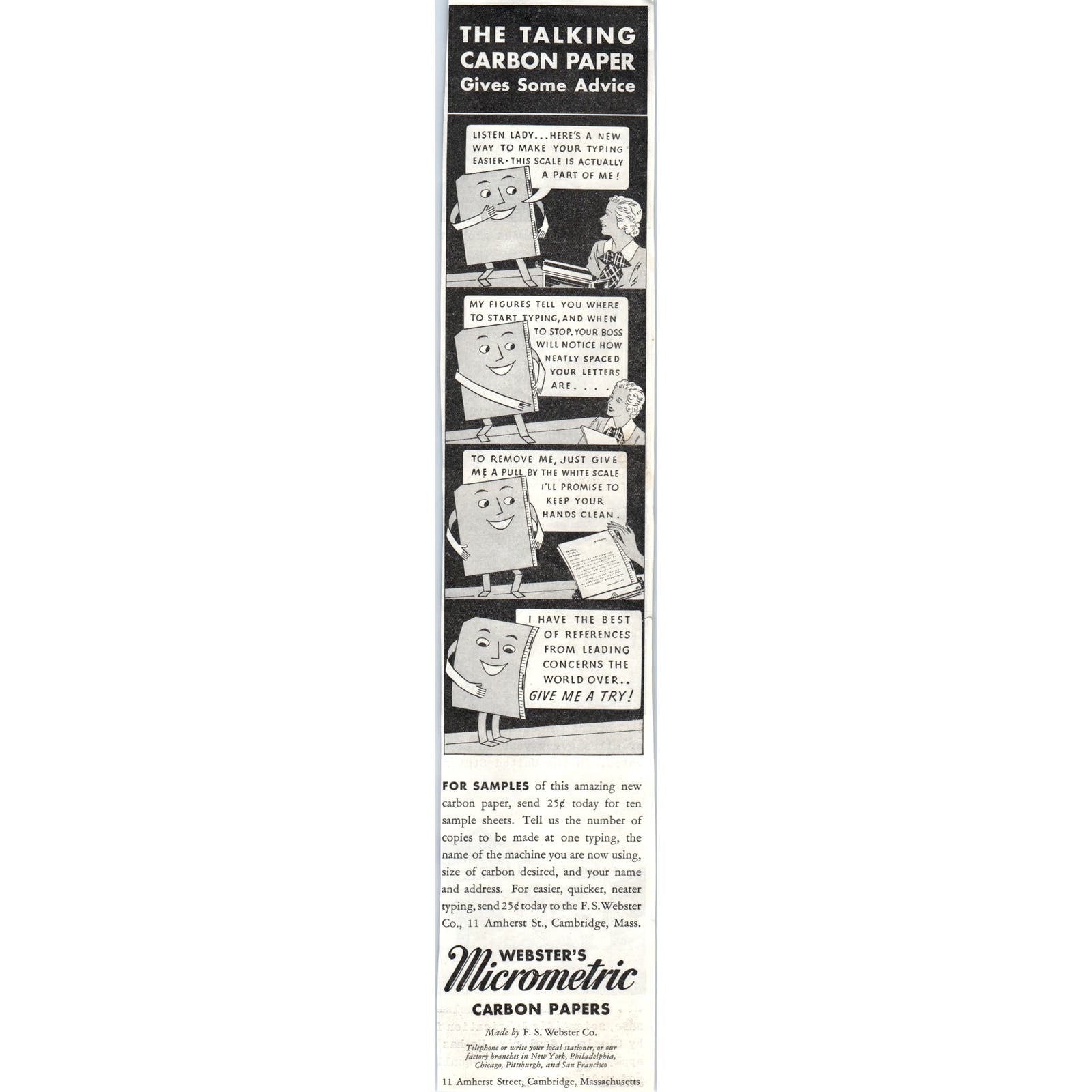 Webster's Micrometric Carbon Papers 1928 Original Magazine Advertisement FL6-8