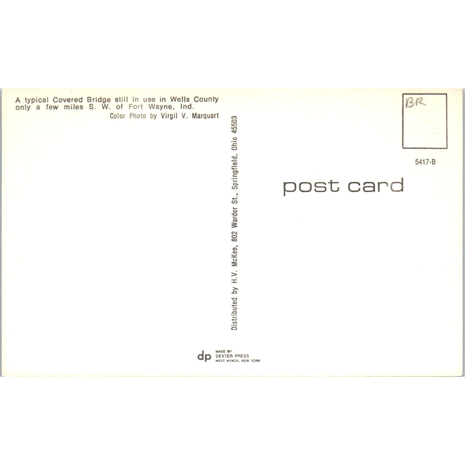 Wells County Fort Wayne Indiana Covered Bridge Postcard PC8