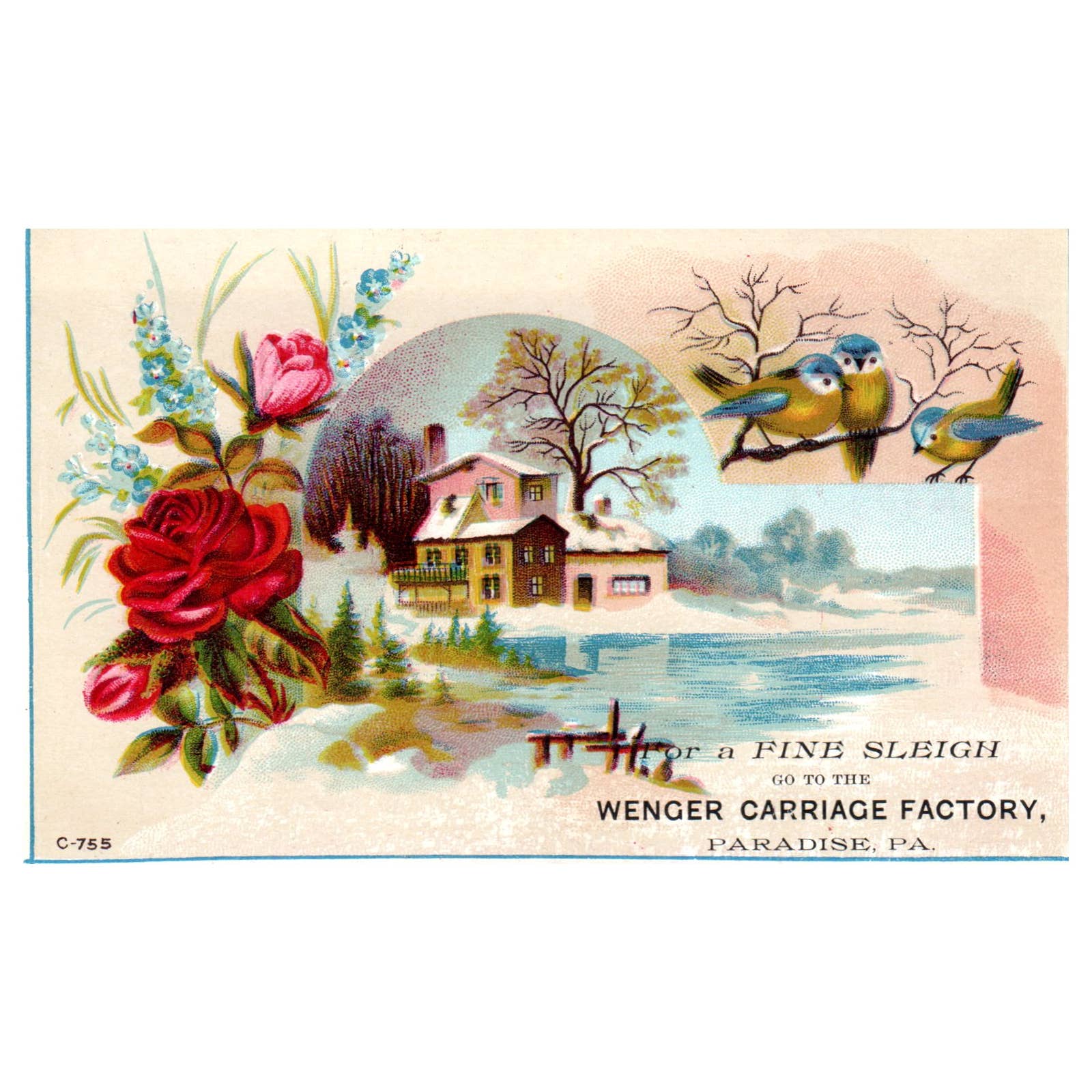 Wenger Carriage Factory Paradise PA - 1880s Victorian Trade Card TJ8-3