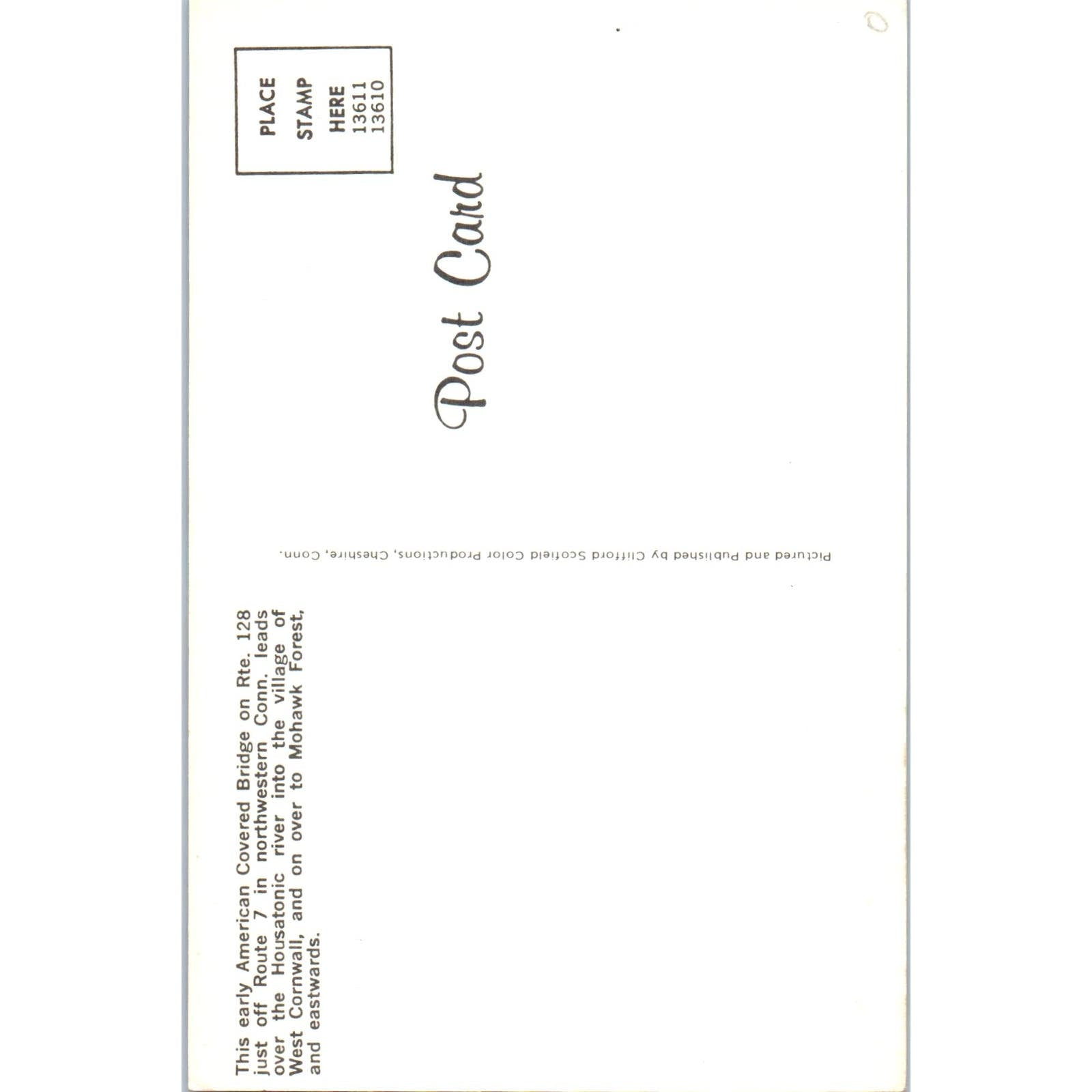 West Cornwall Housatonic River Mohawk Forest CT Covered Bridge Postcard PC7