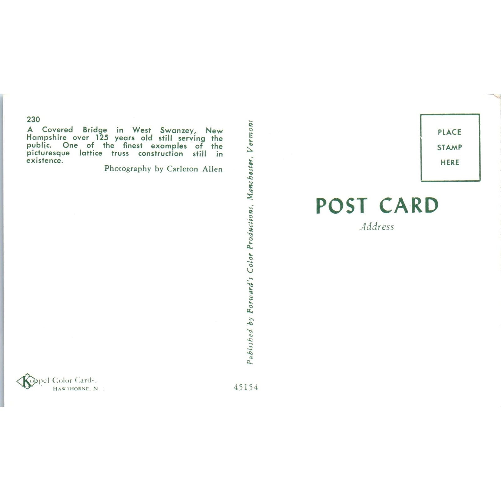 West Swanzey Bridge NH Covered Bridge Postcard PC4
