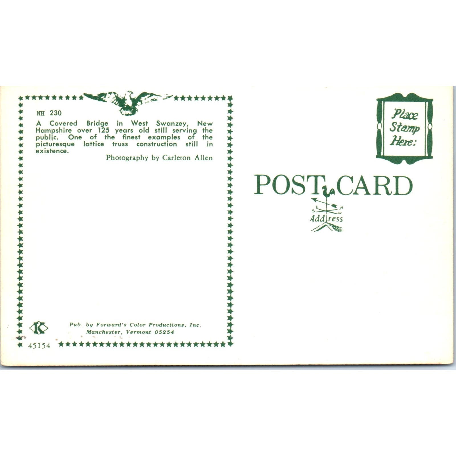 West Swanzey New Hampshire Vintage Covered Bridge Postcard PC15
