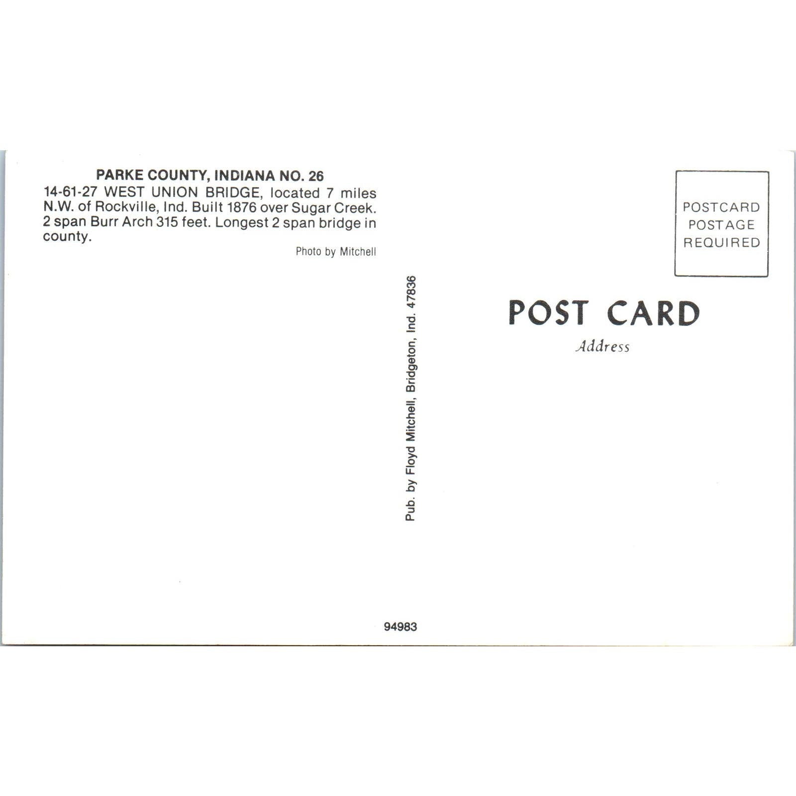 West Union Bridge Parke County 26 Rockville IN Covered Bridge Postcard PC15