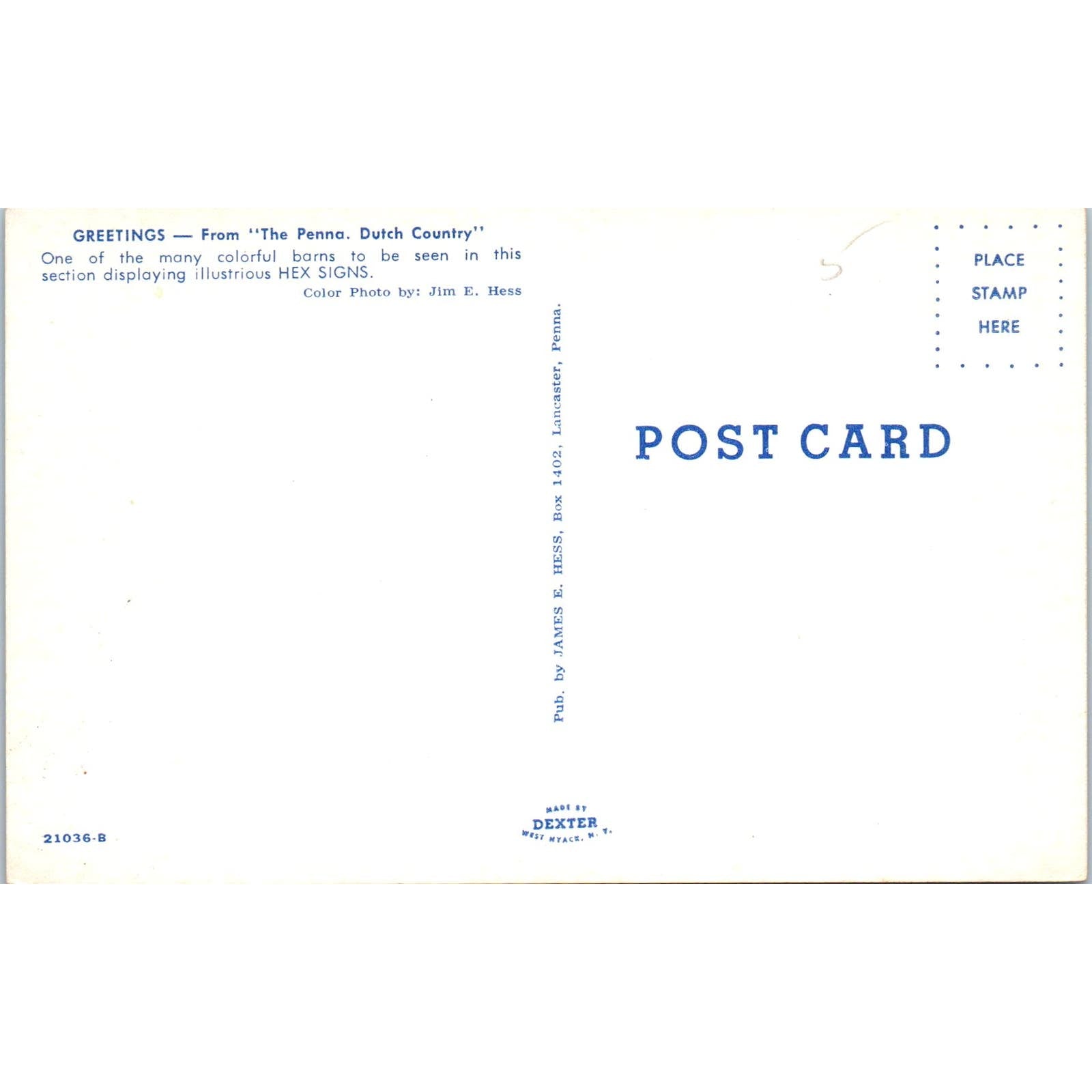 White Amish Hex Sign Barn Pennsylvania Dutch Country Postcard PD7