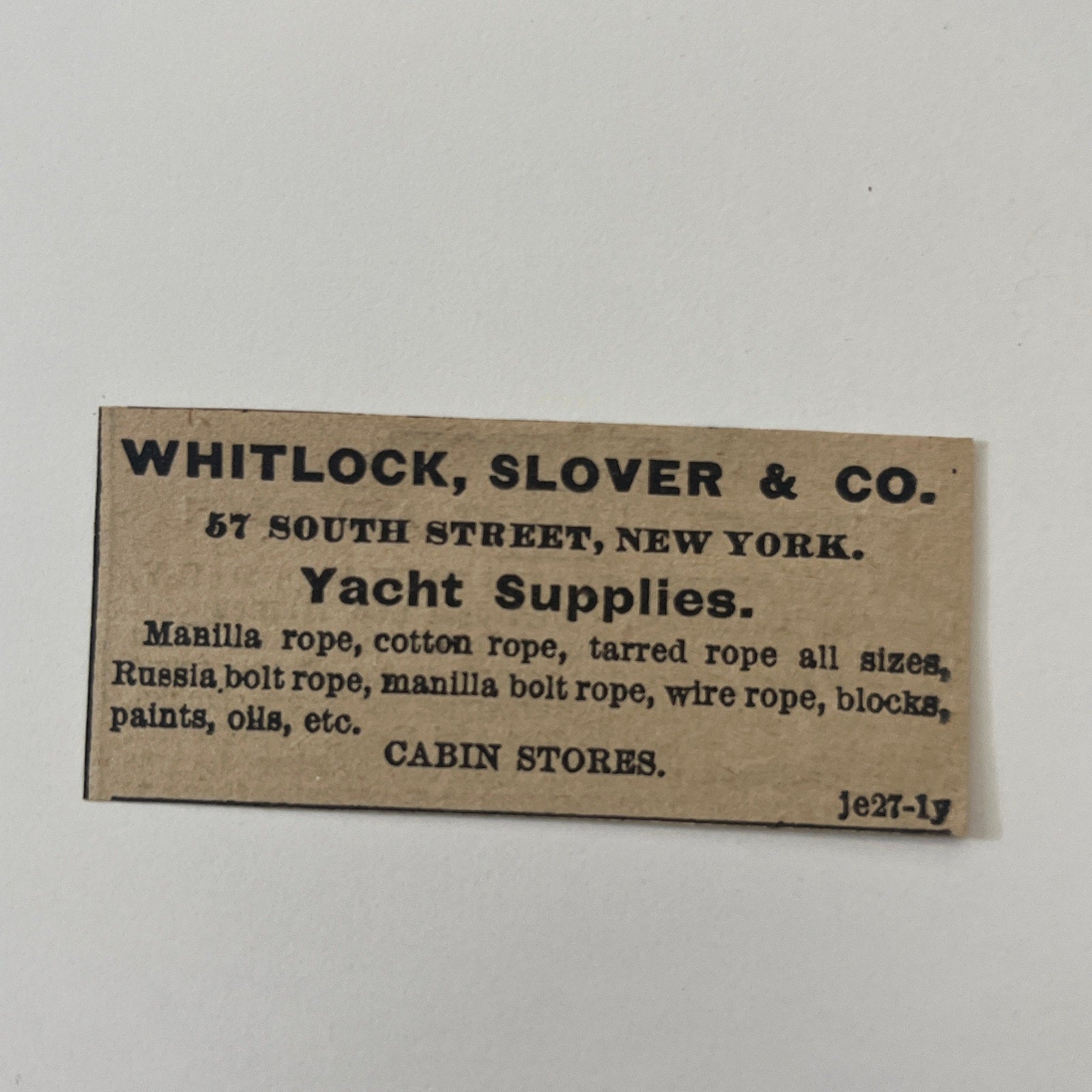 Whitlock, Slover & Co Yacht Supplies 57 South St. NY 1878 Ad AG2-M16
