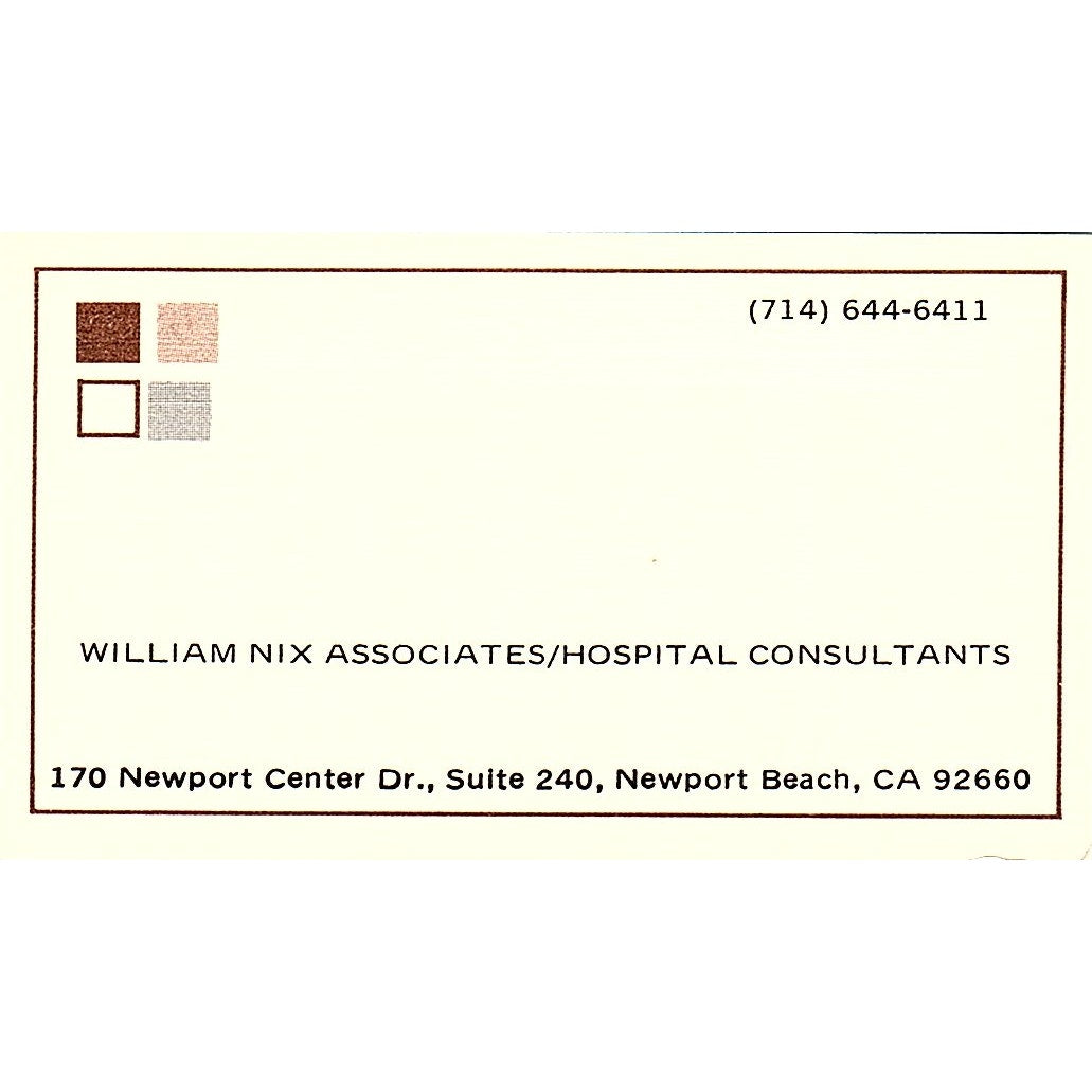 William Nix Associates/hospital Consultants CA Vintage Business Card SF3-B3