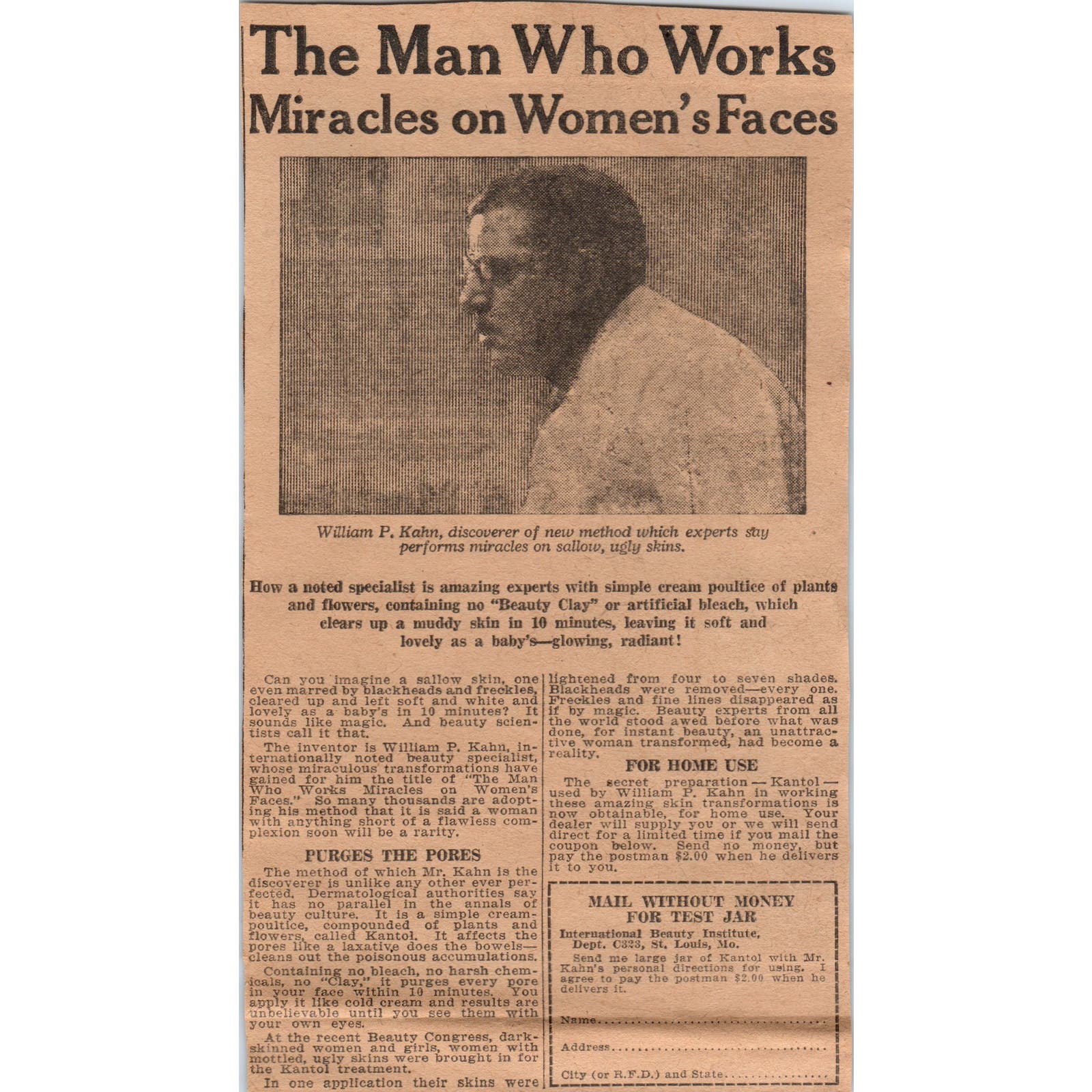 William P. Kahn Skin Care Miracle Quackery 1923 Magazine Ad Clip AE1-1