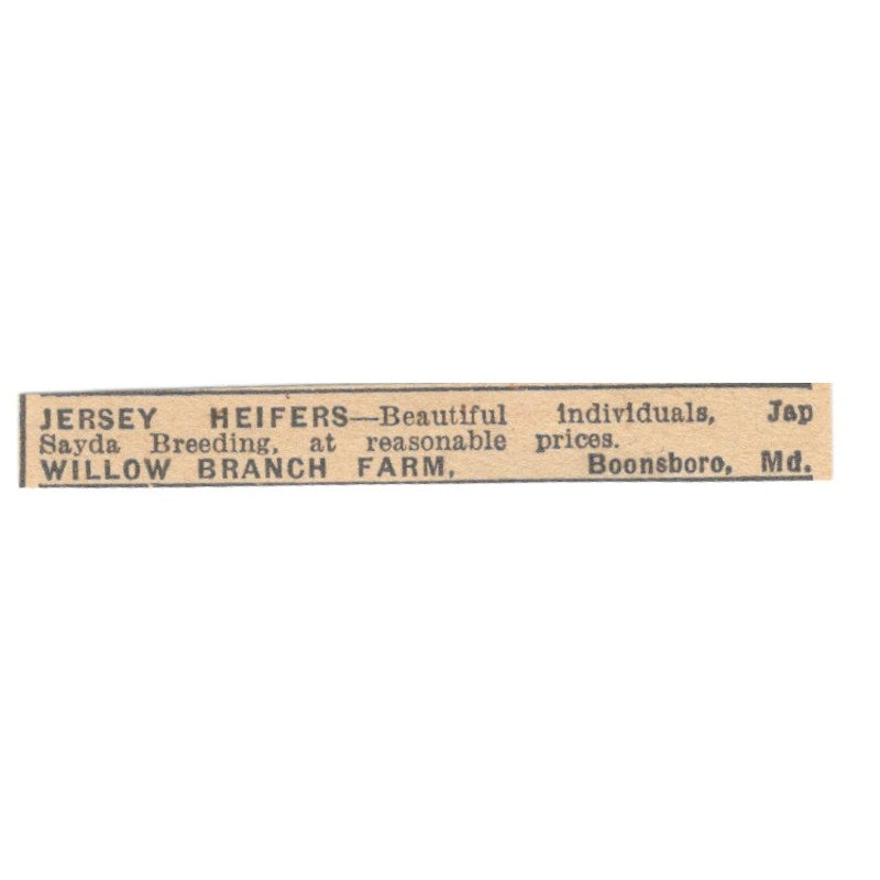 Willow Branch Farm Jersey Heifers Boonsboro MD 1922 Magazine Ad AF2-T3