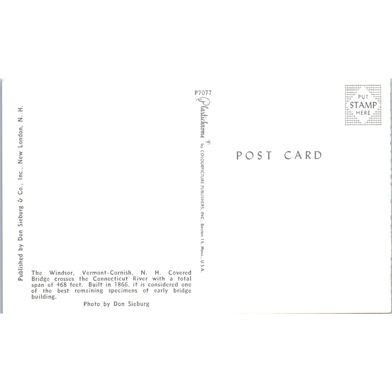 Windsor Vermont-Cornish New Hampshire Covered Bridge Postcard PC3