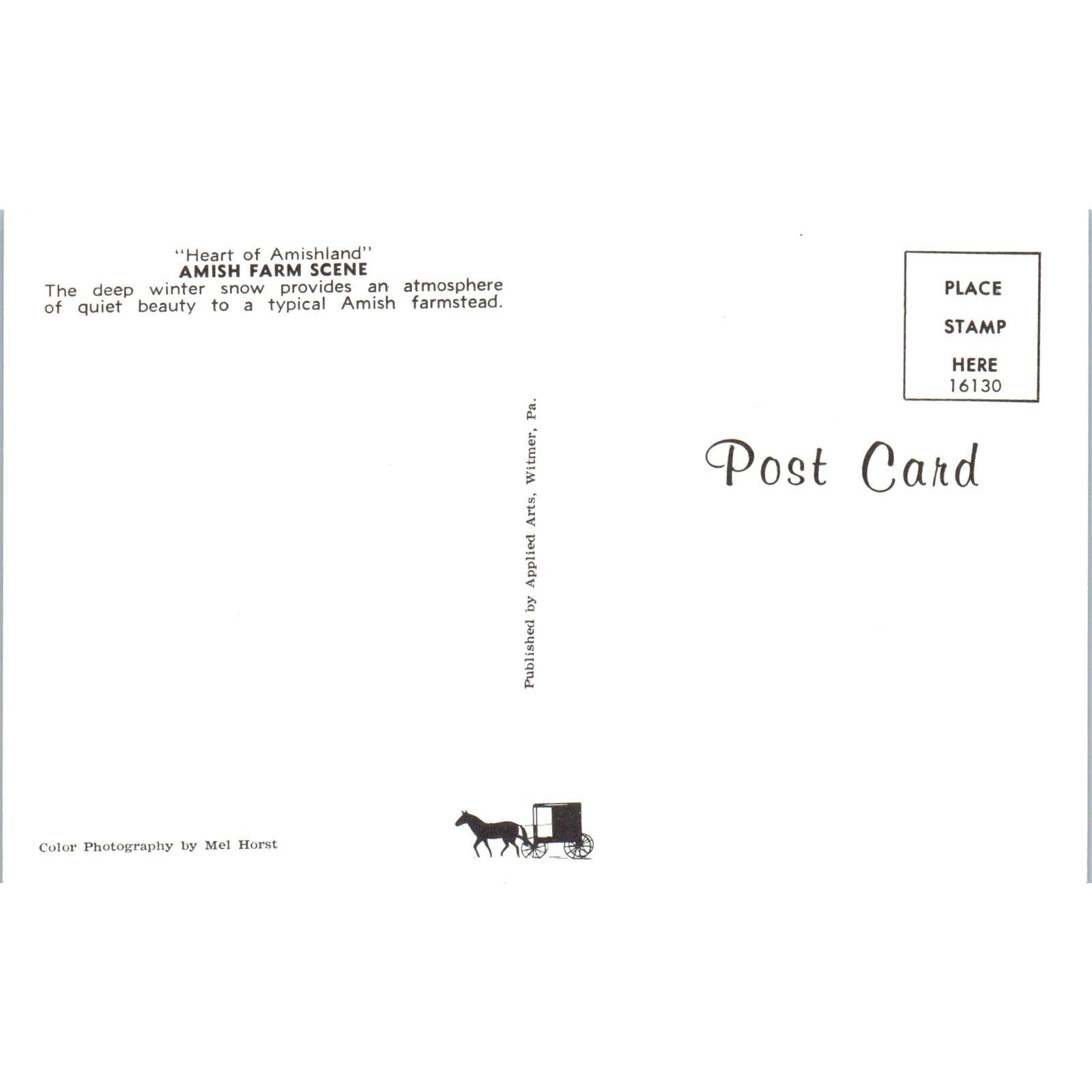 Winter Amish Farm Scene Pennsylvania Dutch Country Vintage Postcard PD5