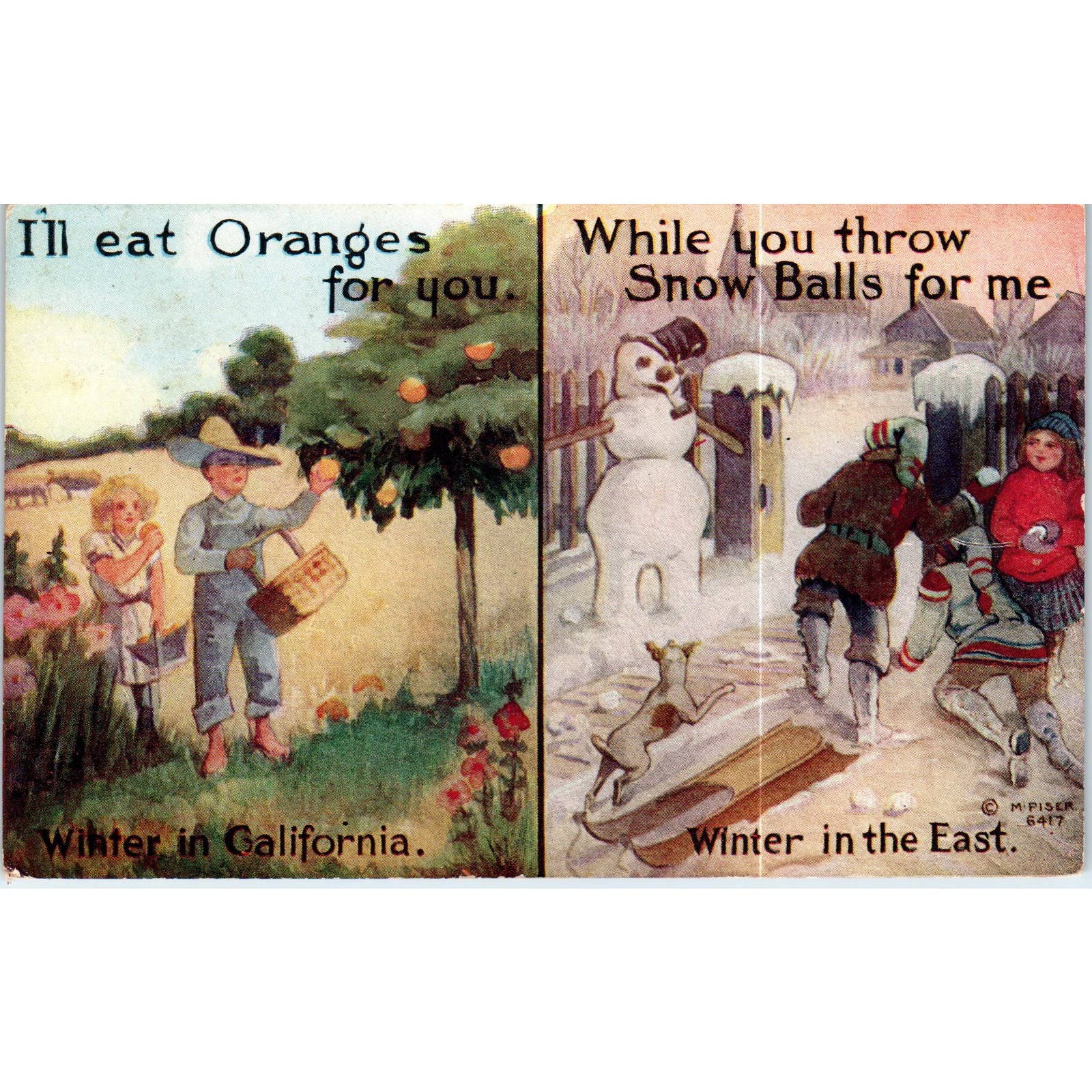 Winter in California / Winter in the East Original Postcard TK1-P19