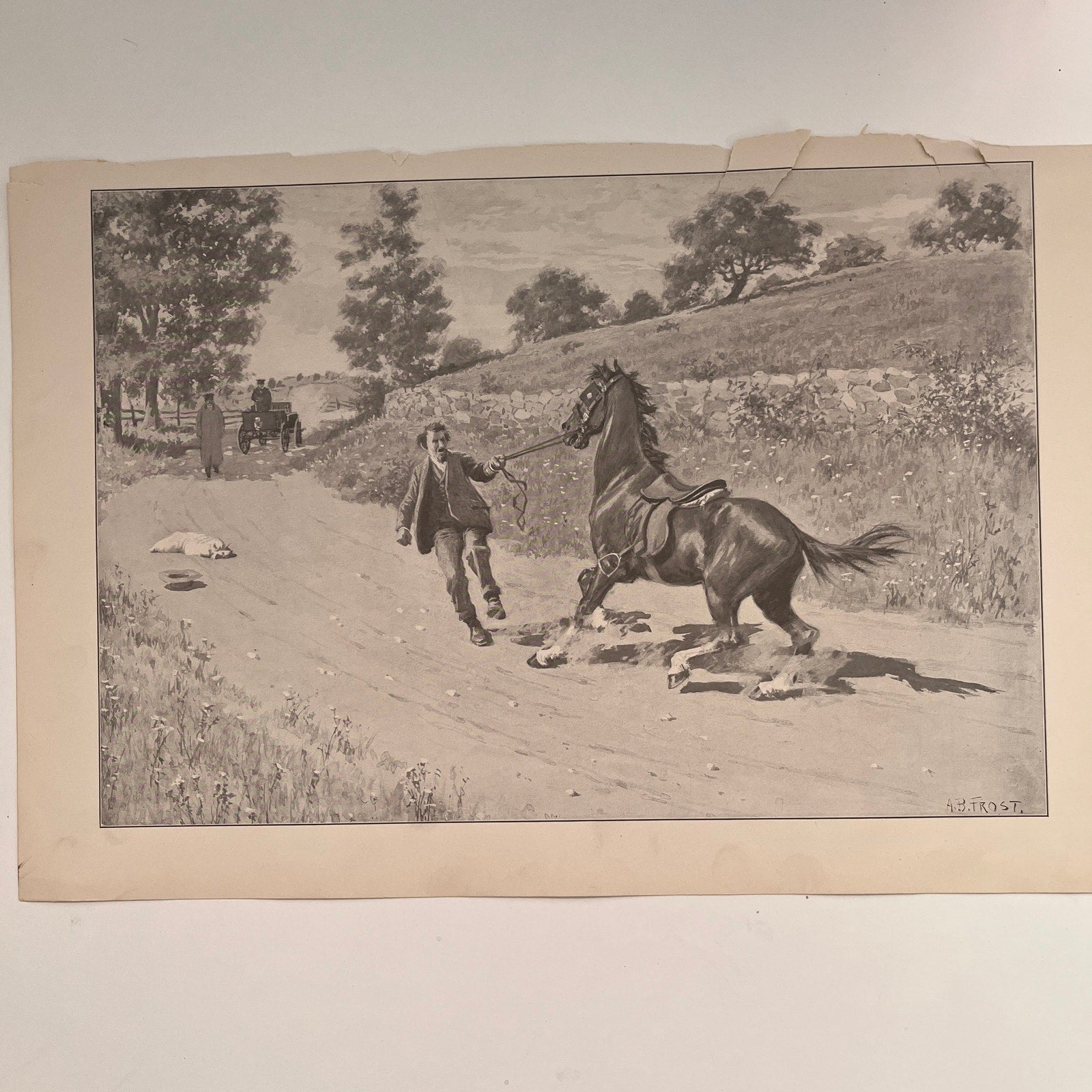 Woah There - Man With Horse Scene - Original 1904 A.B. Frost Art Print V26-4