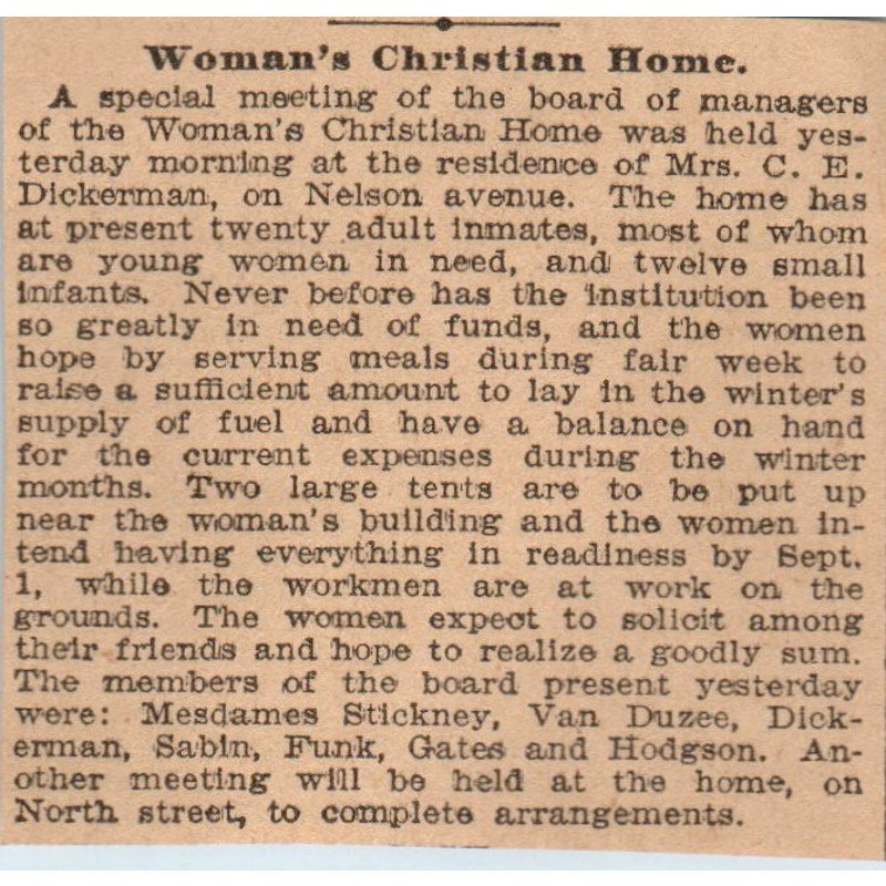 Woman's Christian Home C.E. Dickerman Nelson Ave St. Paul 1898 Newspaper AF2-Q4