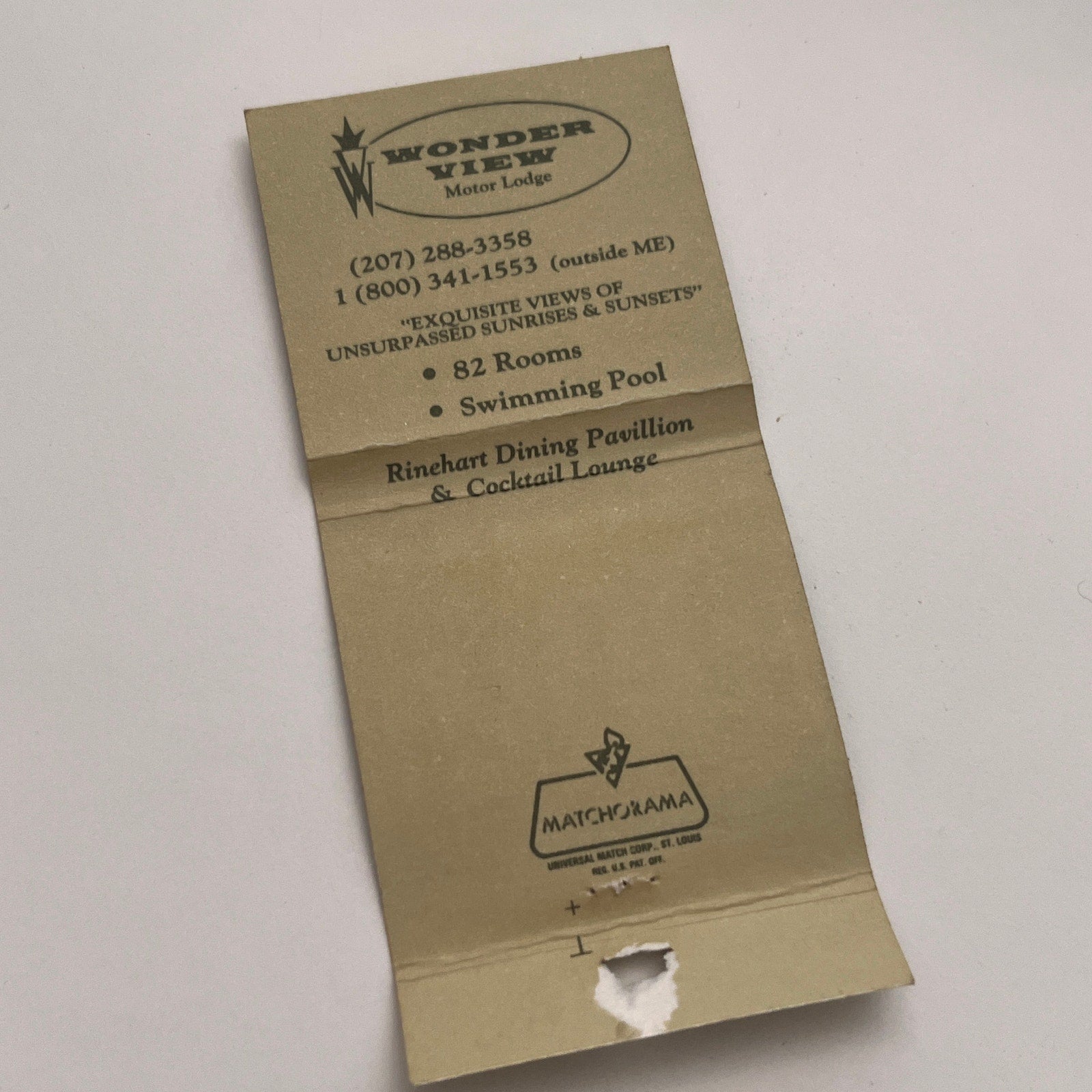Wonder View Motor Lodge Bar Harbor ME Vintage Matchbook Cover TB8-MB-4
