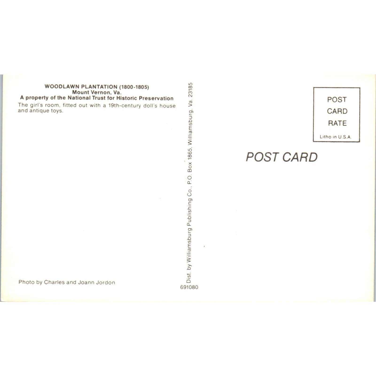 Woodlawn Plantation Girls Room Doll House Mount Vernon VT Original Postcard PB9