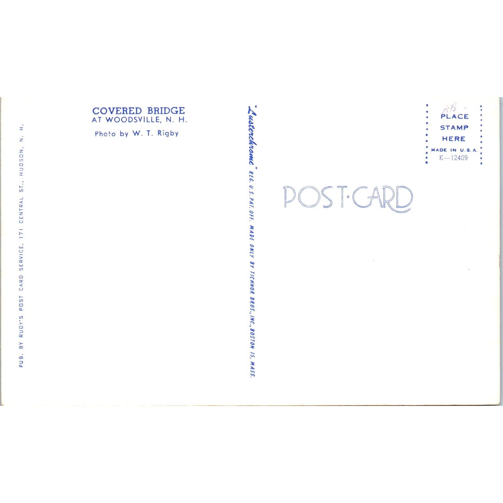 Woodsville New Hampshire Covered Bridge Postcard PB13