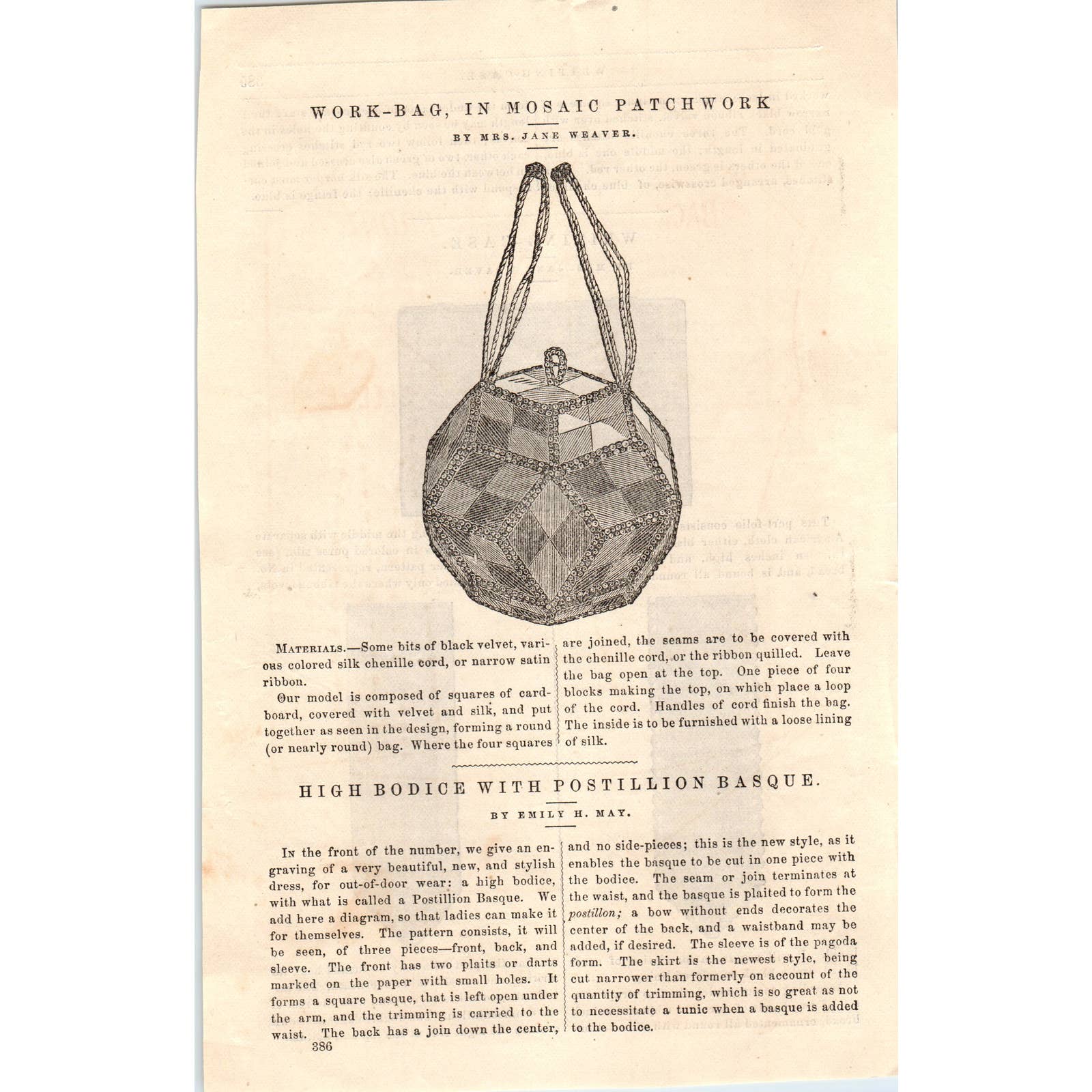 Work Bag in Mosaic Patchwork - Victorian Fashion Plate - 1878 Original Plate TJ7-L2