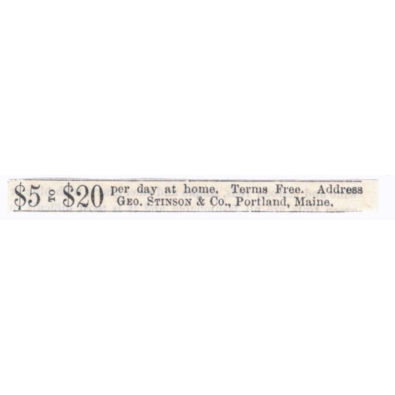 Work From Home Geo. Stinson & Co. Portland Maine - Ad 1878 Original TJ7-L2-1
