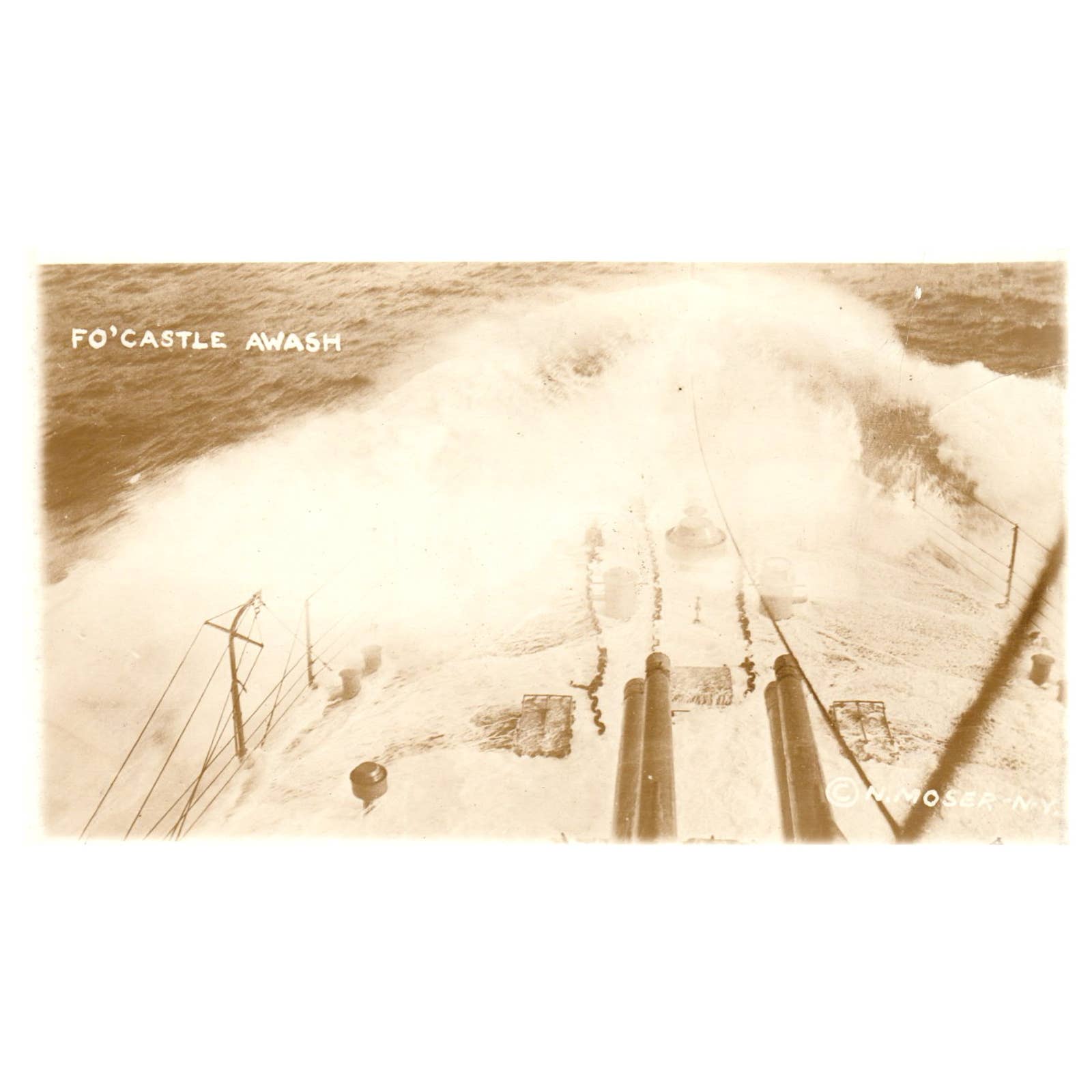 WWI Battleship Scene - Fo'castle Awash - Original Postcard RPPC TJ8-4