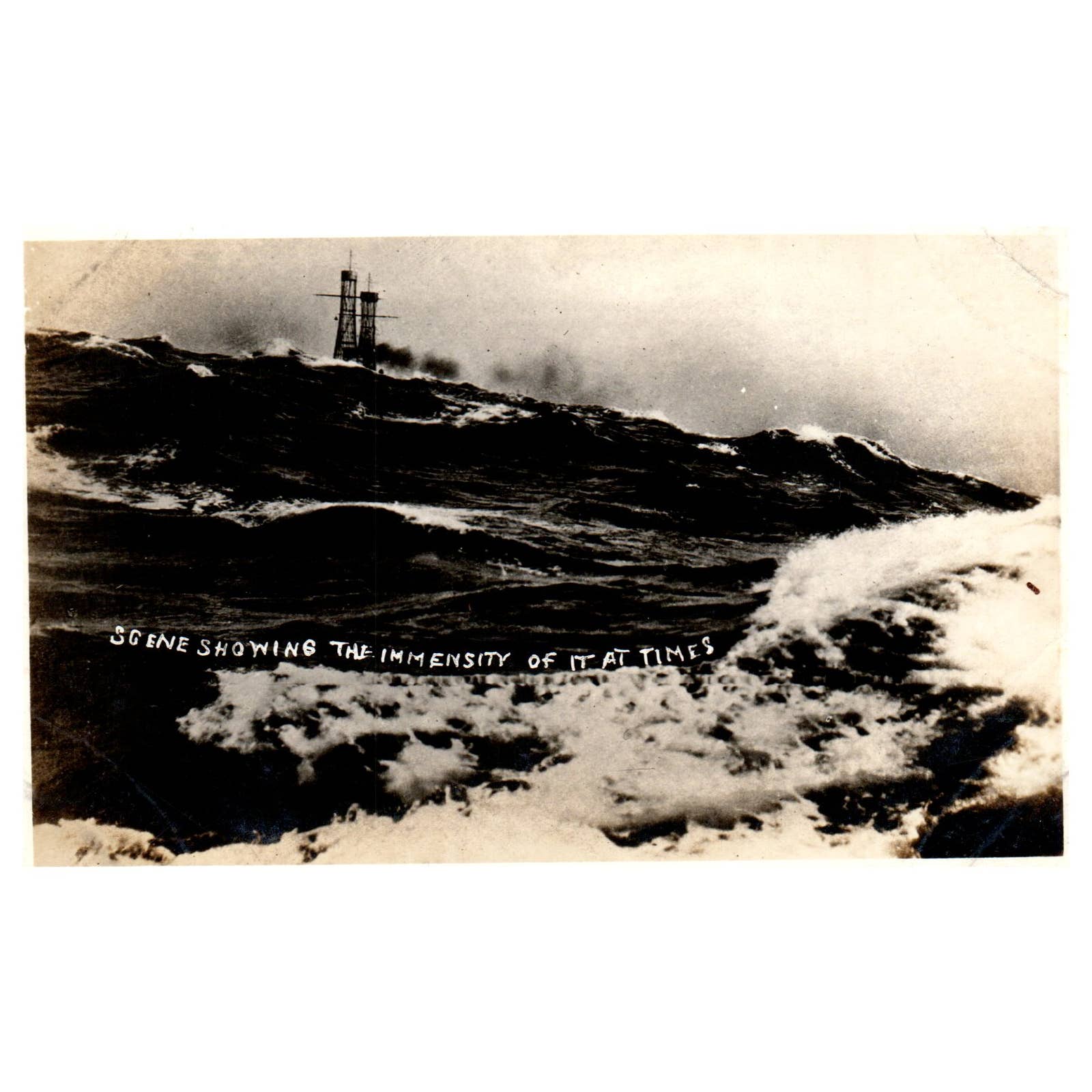 WWI Battleship Scene Showing Rough Seas - Original Postcard RPPC TJ8-4