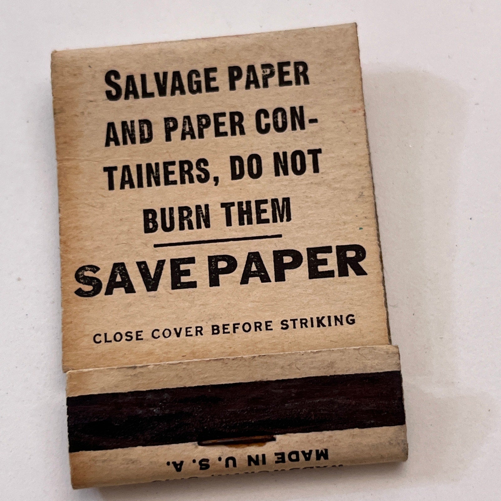 WWII Homefront Save Paper Save Dats War Effort Vintage Matchbook Cover TB8-MB3-5
