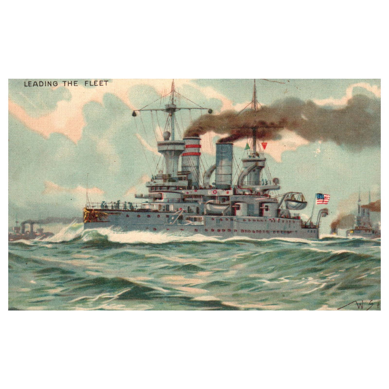WWII US Battleship Illustration - Original Postcard TJ8-5