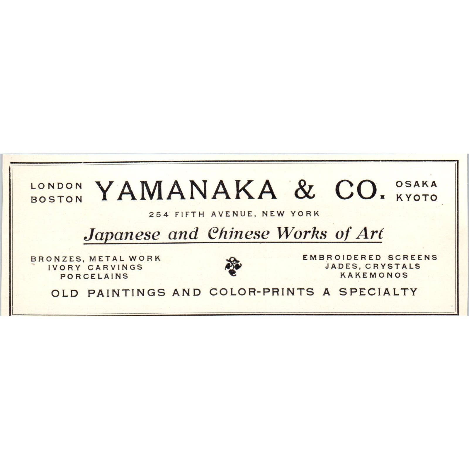 Yamanaka & Co Japanese & Chinese Works of Art NY c1905 Victorian Ad AE9-MA1