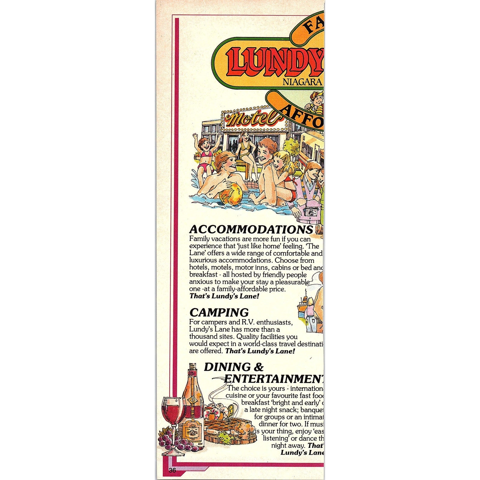 Measures approx 10 1/4" x 3.5”. Original print ad taken from a 1985 Niagara Falls Canada Official Souvenir Guide. See pics for condition.