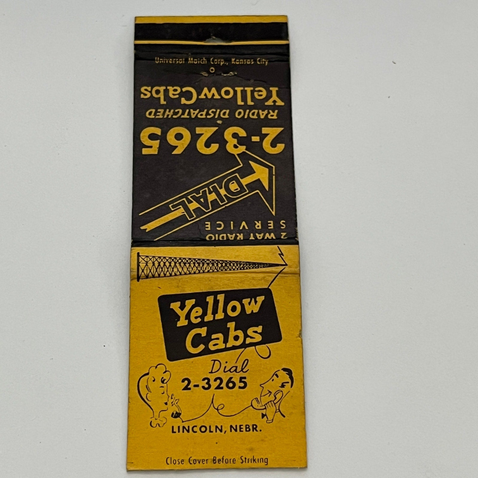Yellow Cabs Radio Dispatched Lincoln NE Vintage Matchbook TB6-MB2-14