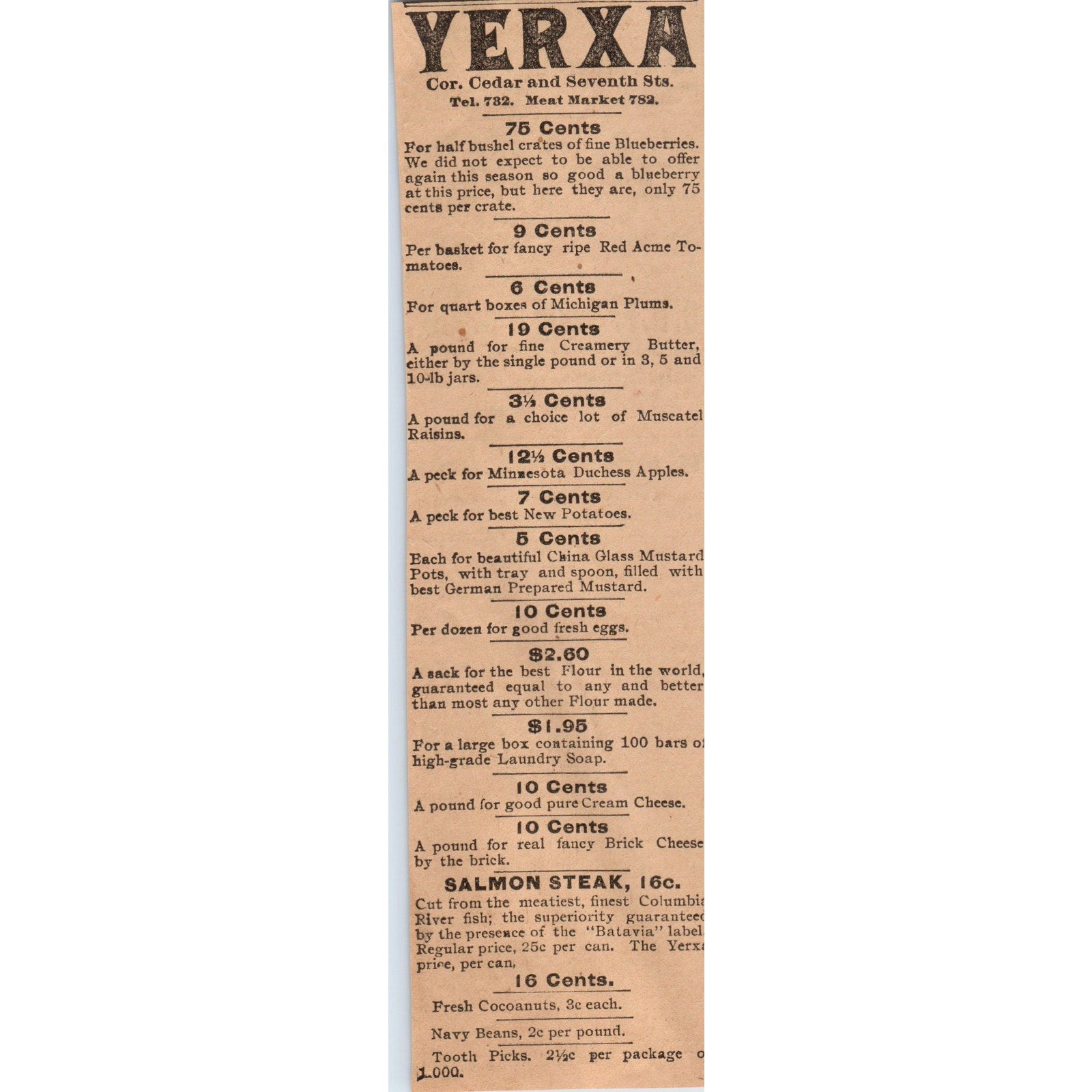 Yerxa Groceries Cedar & 7th Street St. Paul MN 1898 Newspaper Ad AF2-A2