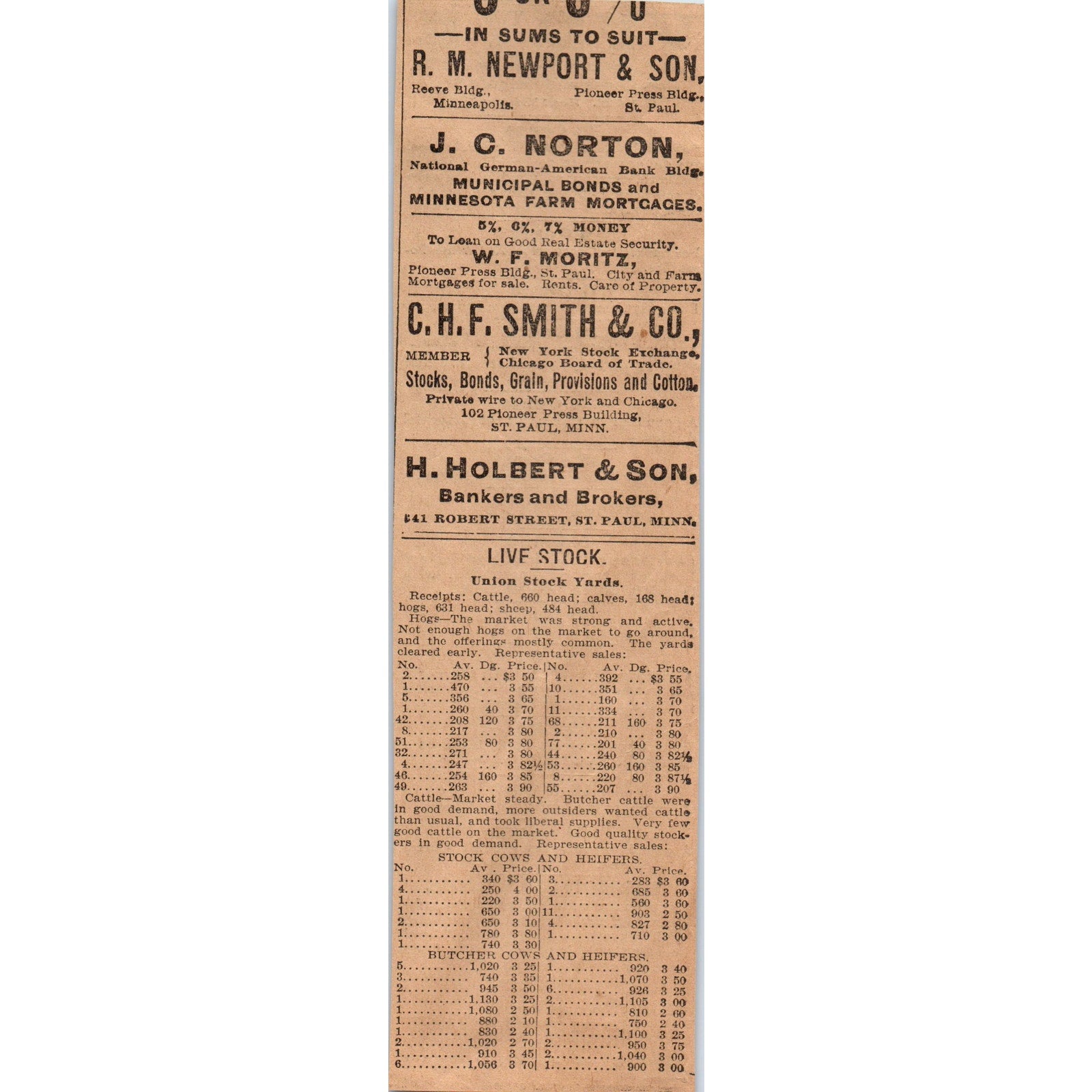 This is around 4.5" wide. If you need an exact measurement please ask. Original piece pulled from the St. Paul Pioneer Press Aug 17, 1898. There may be some light staining, tears, and/or other signs of wear and tear. See pics for condition.