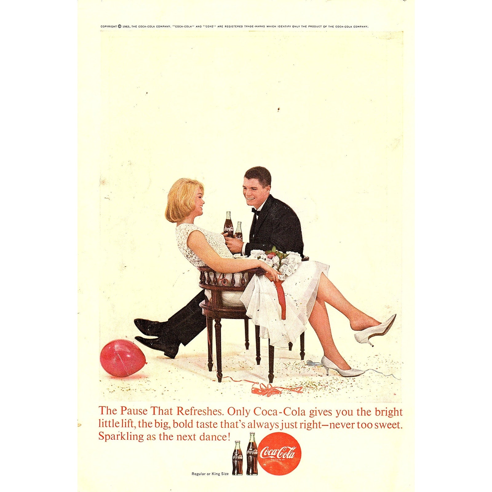 Young Couple at New Year's Party Enjoy Coke 1963 Coca-Cola Coke Ad 6.75x10 V18