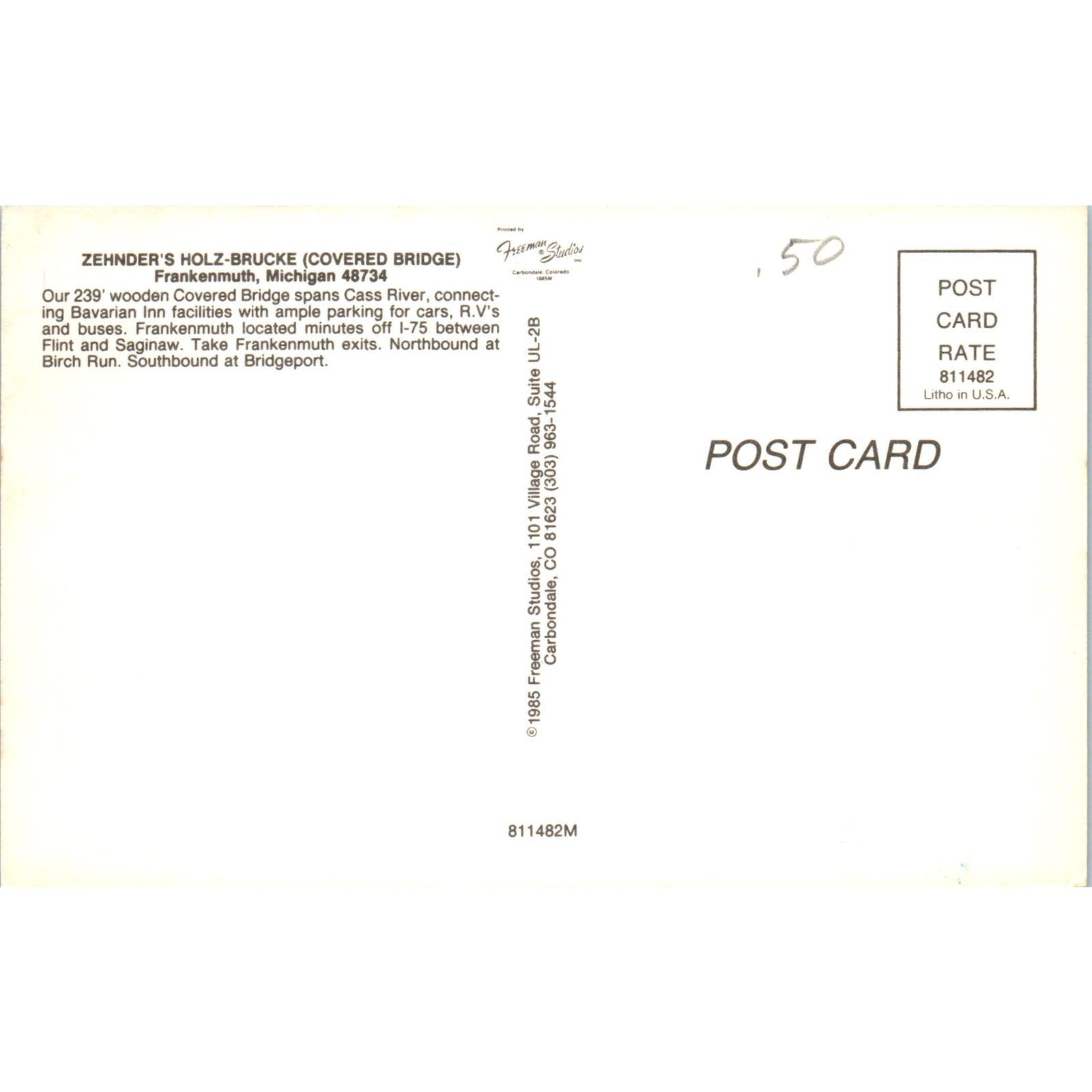 Zehnder's Holz-Brucke Bridge Frankenmuth MI Covered Bridge Postcard PB11