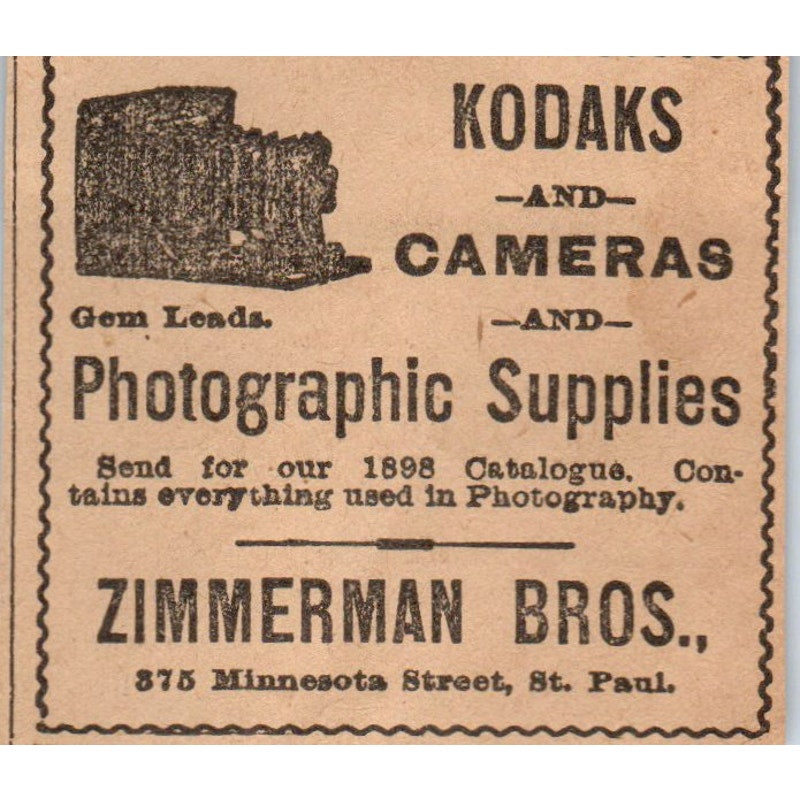 Zimmerman Bros Kodaks and Cameras Minnesota St St. Paul 1898 Newspaper Ad AF2-Q4