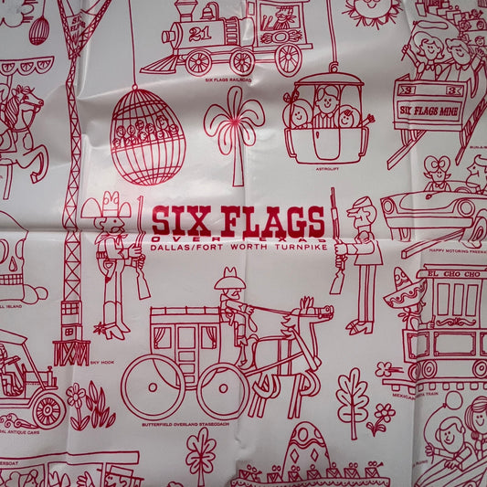 Vintage 1966 Six Flags Over Texas Coloring Map Reusable Unused 15x15 SAJ5-1